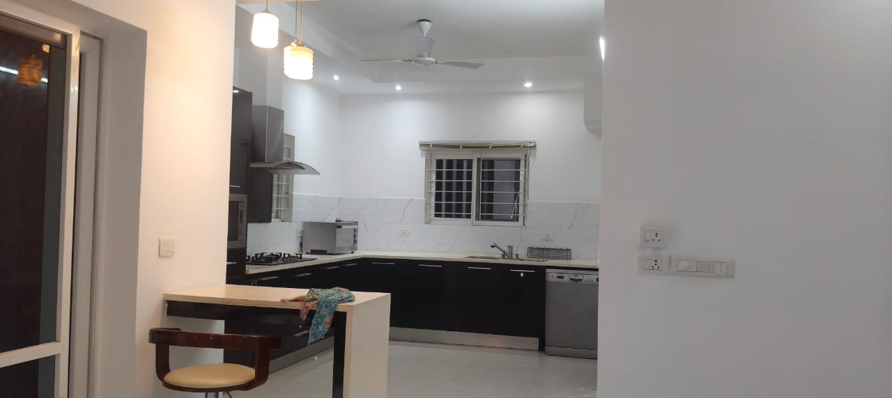 Embrace a vibrant family lifestyle in Hyderabads Tellapur, where this semi-furnished, four-bedroom, four-bathroom villa is available for rent at 90 thousand, boasting a generous 3410 square feet of living space.