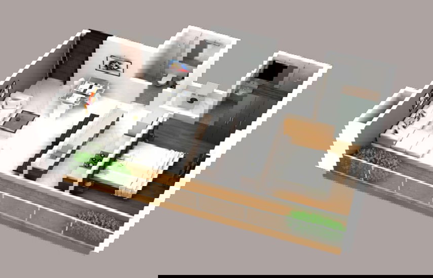 • This 333 square feet home on the 9th floor of a 22-story building offers