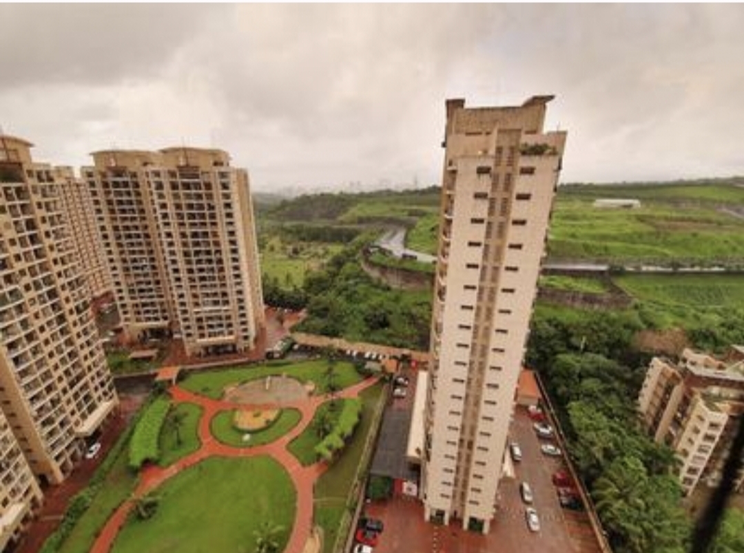 This semi-furnished 2-bedroom Flats in Lalani Grandeur, Goregaon East, Mumbai offers a community view from the 7th floor of a 23-story building.