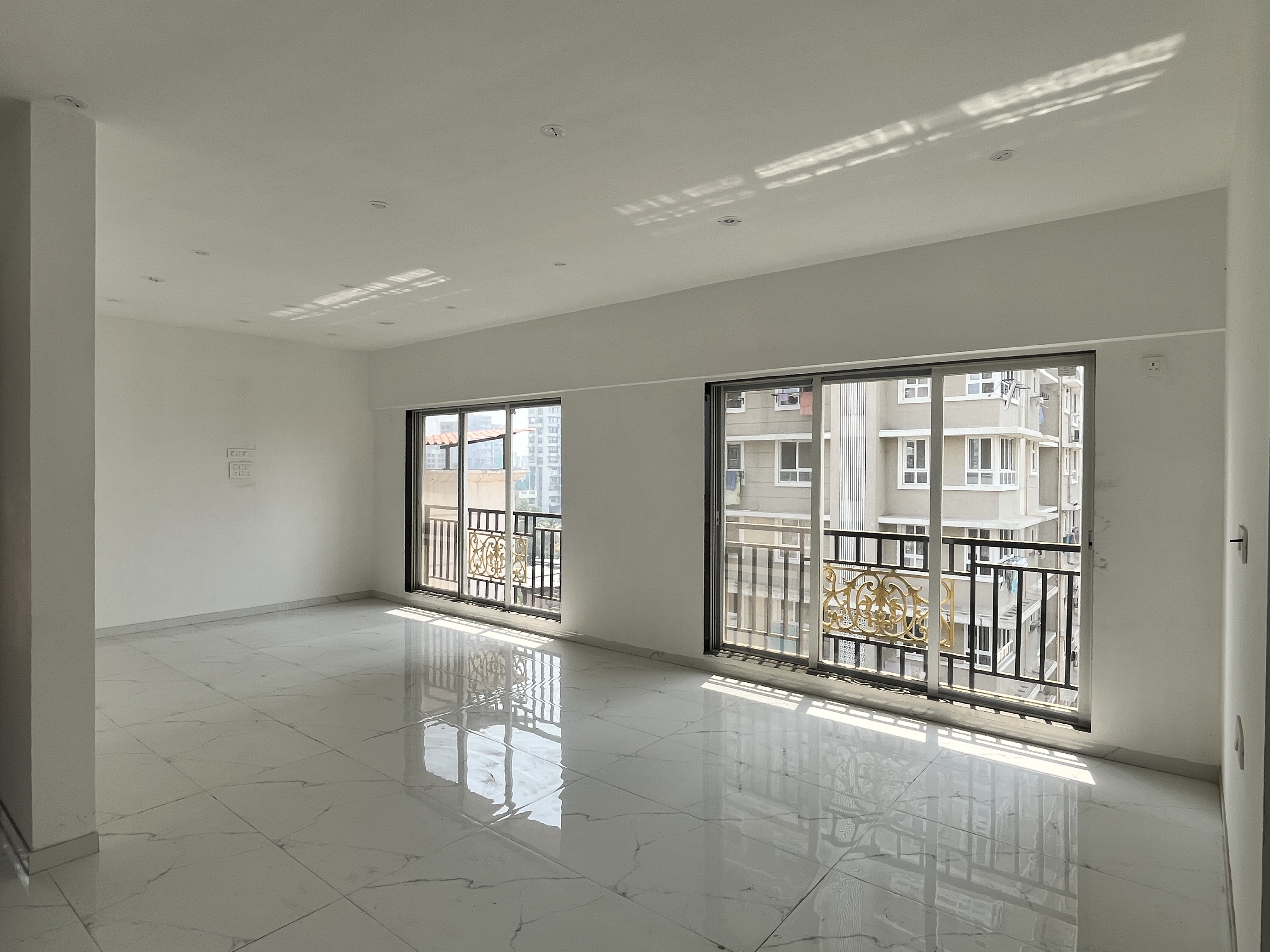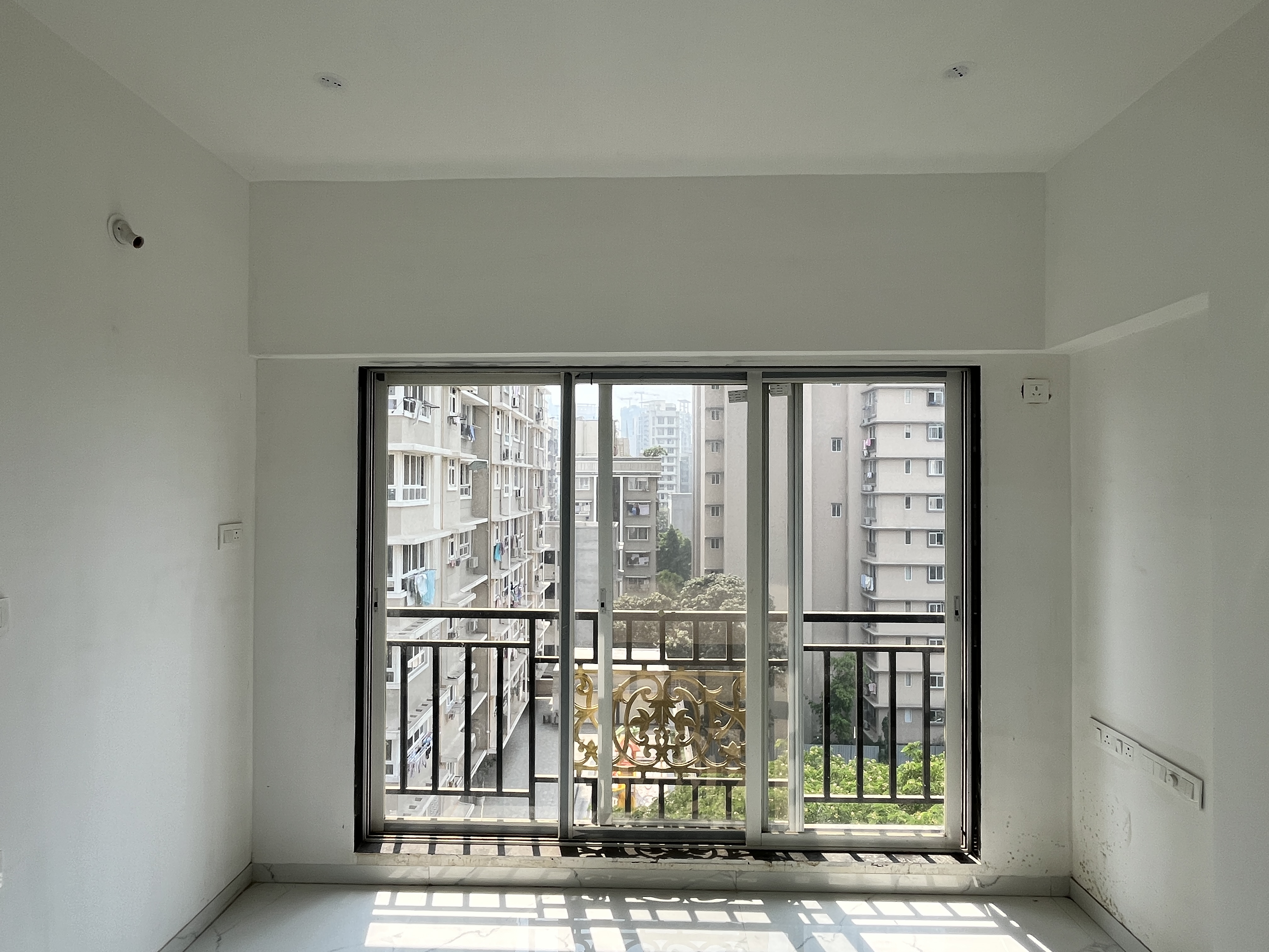 A park view Flats in Mulund West offers a refreshing outlook from its fifth-floor position within Asha Nagar CHS, a 14-story building with eight to ten years of standing.
