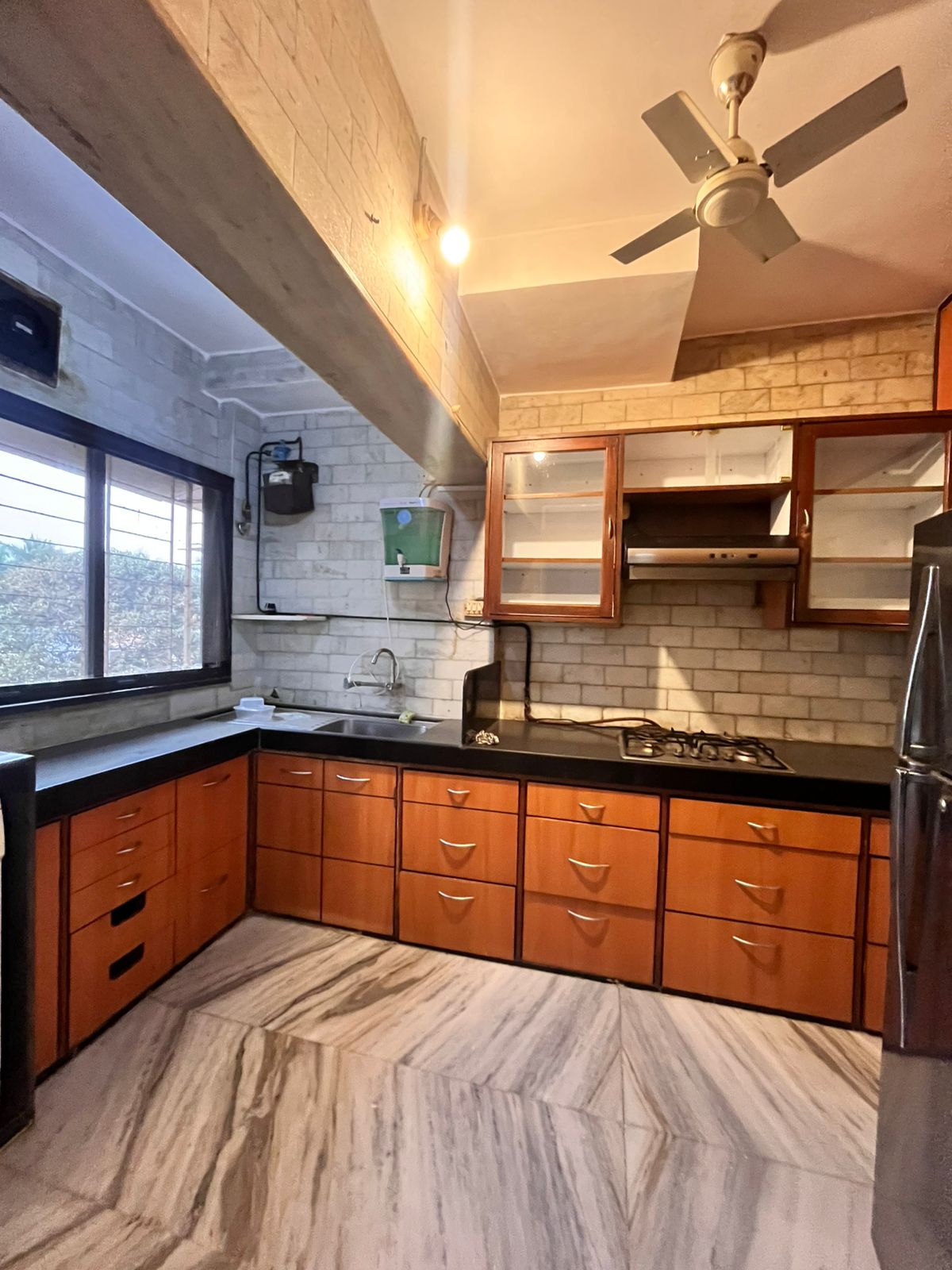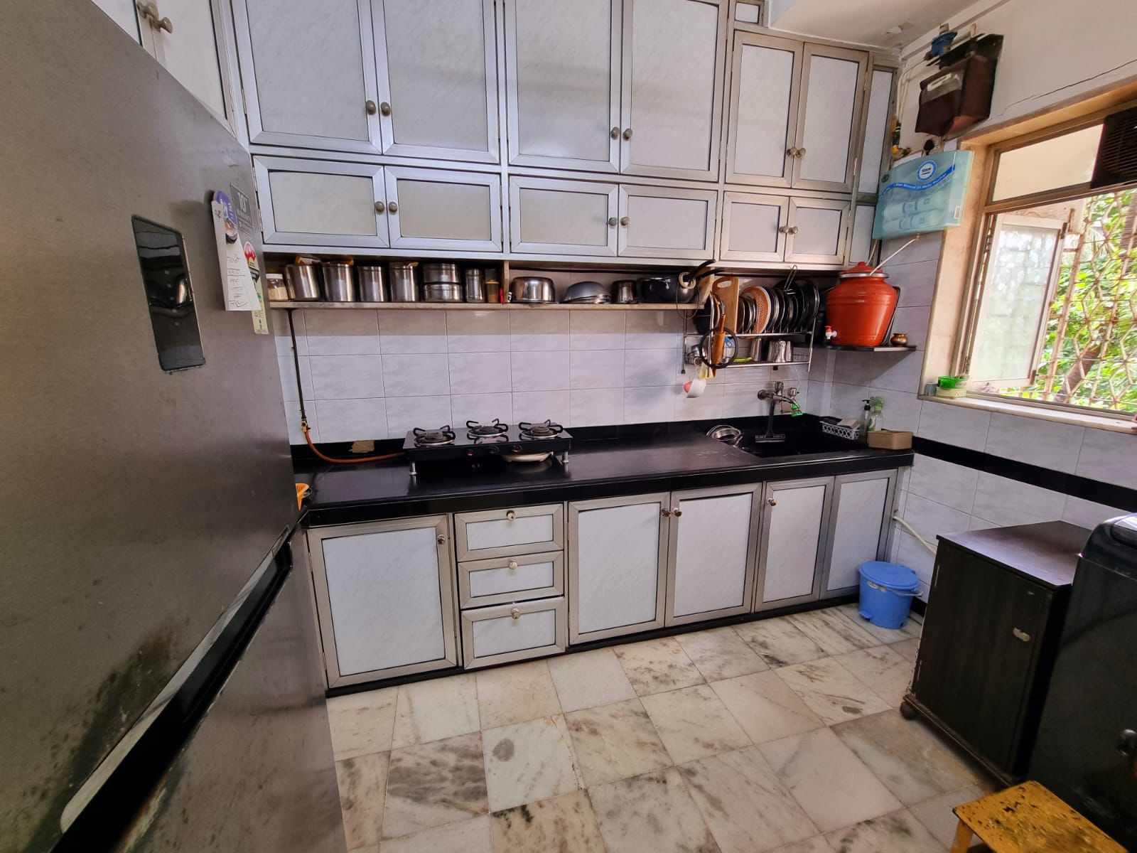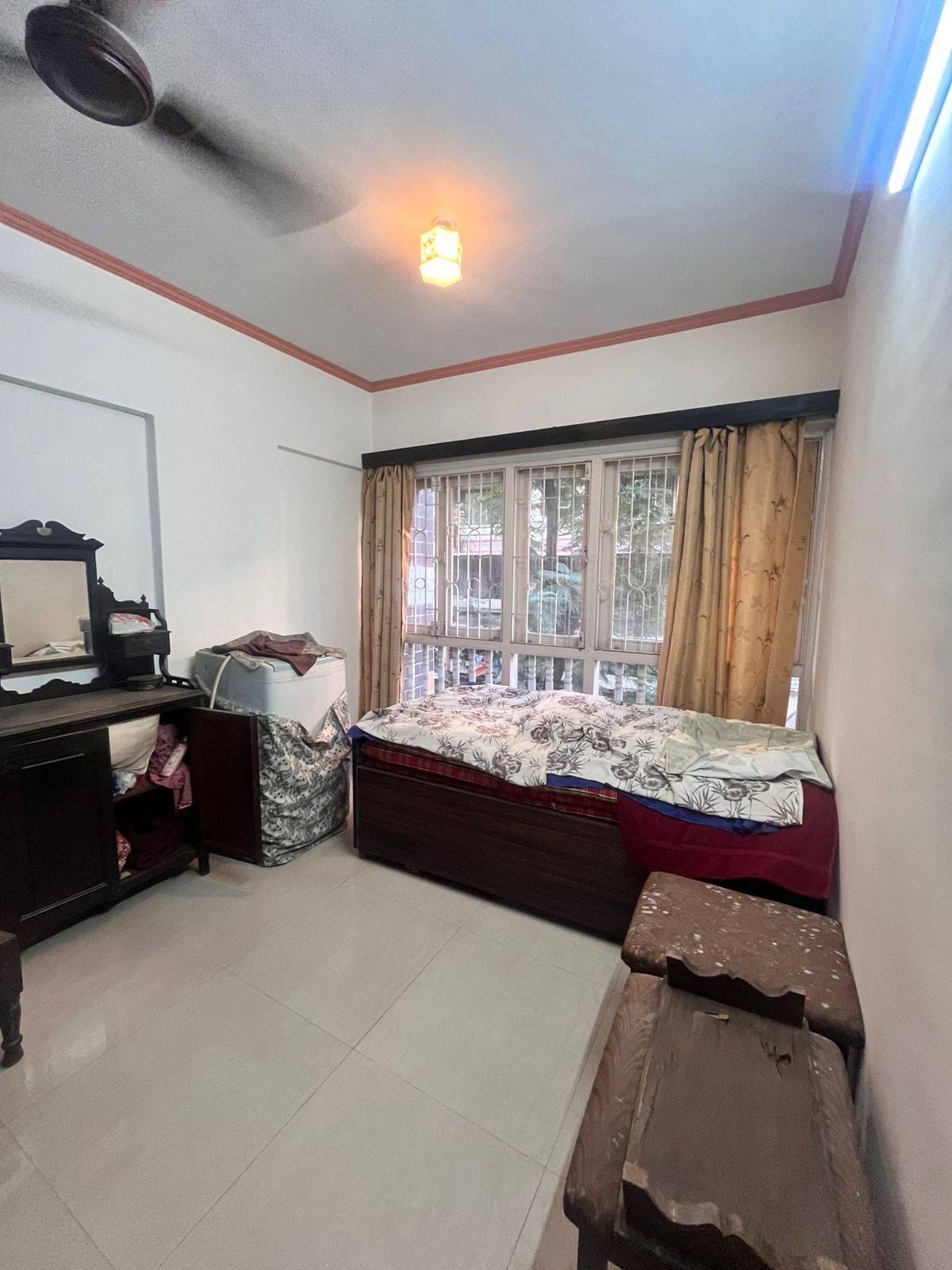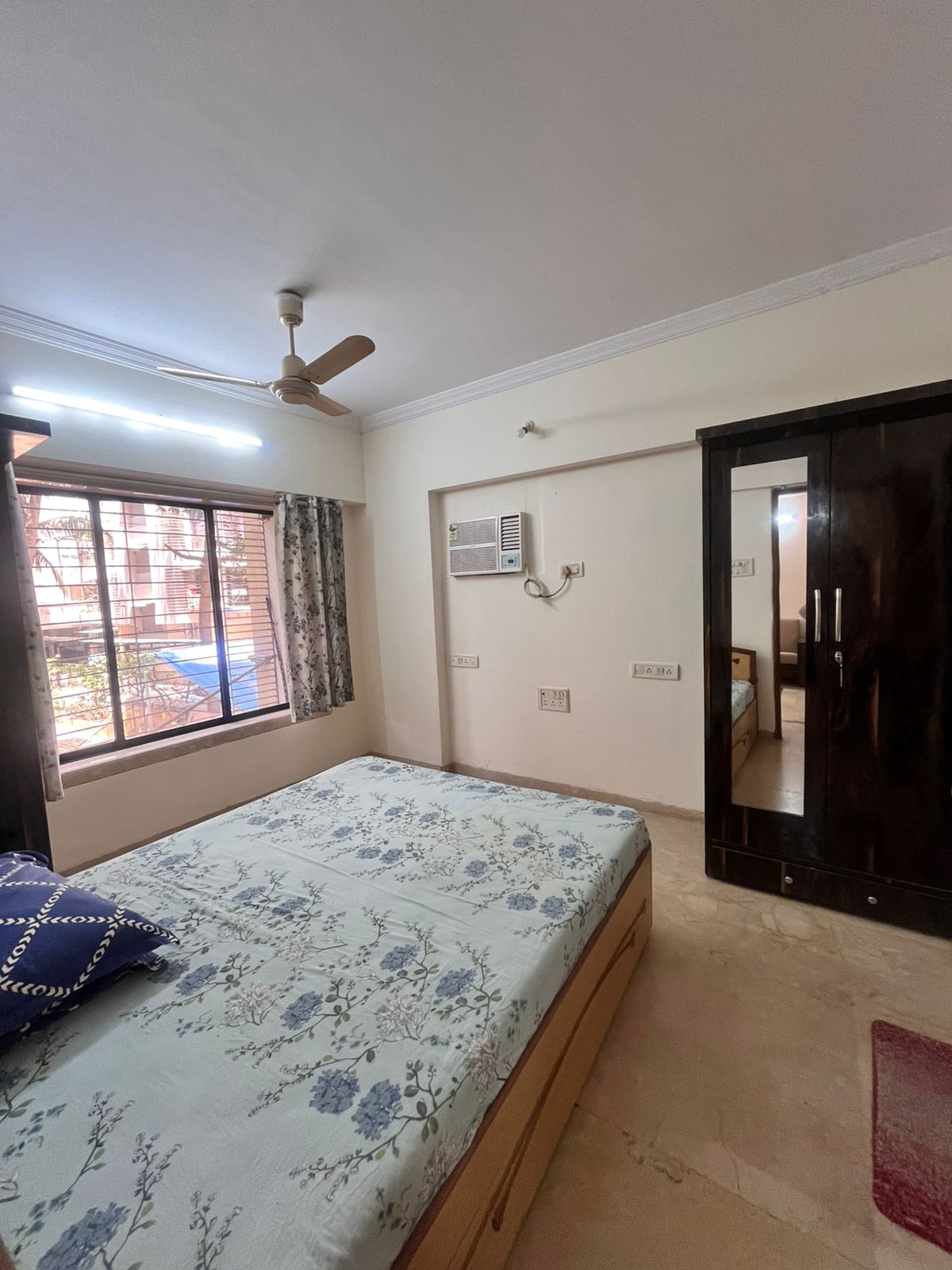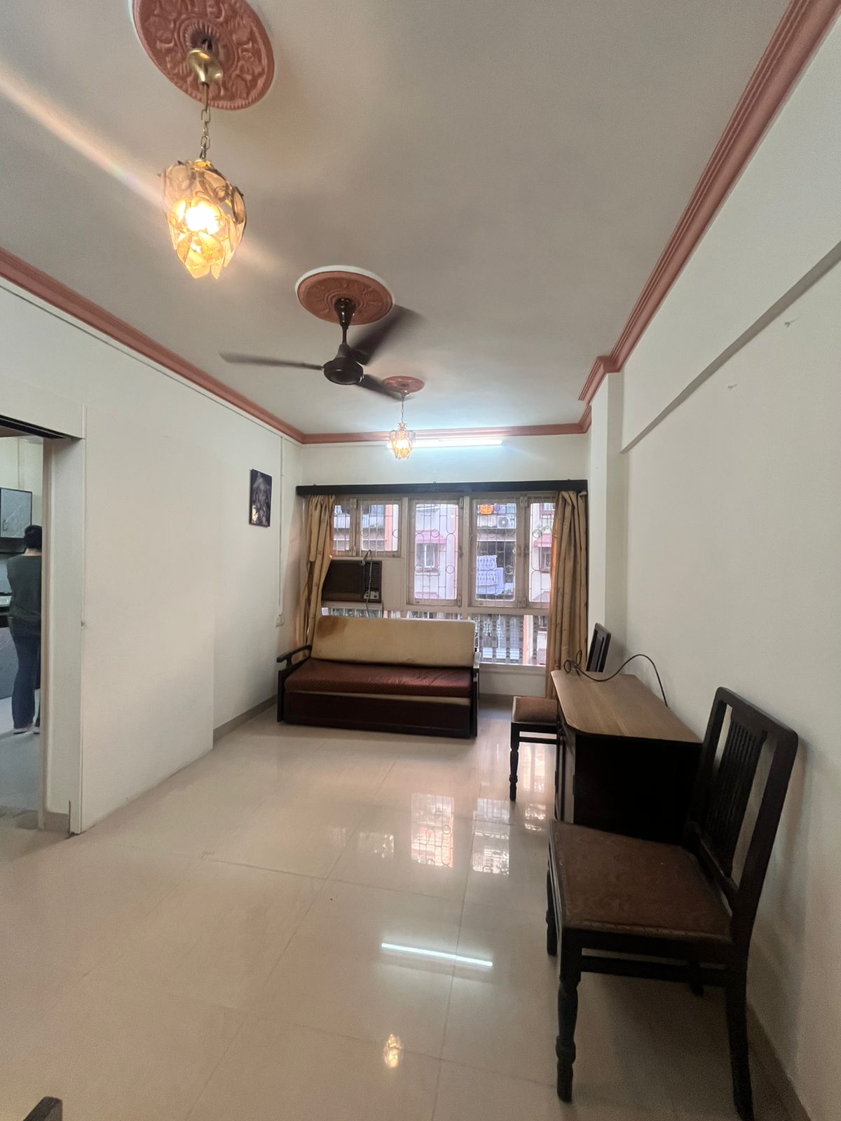 This furnished 1-bedroom, 1-bathroom Flats on Yari Road in Versova, Andheri West, Mumbai, offers a comfortable living experience with a garden view from its second-floor position in a four-story building.