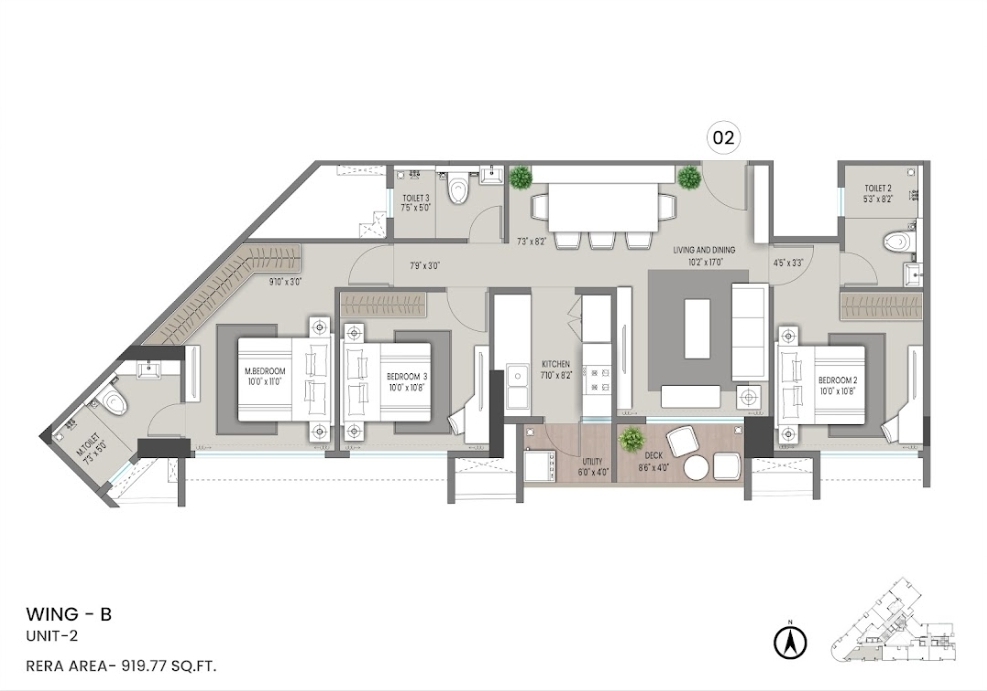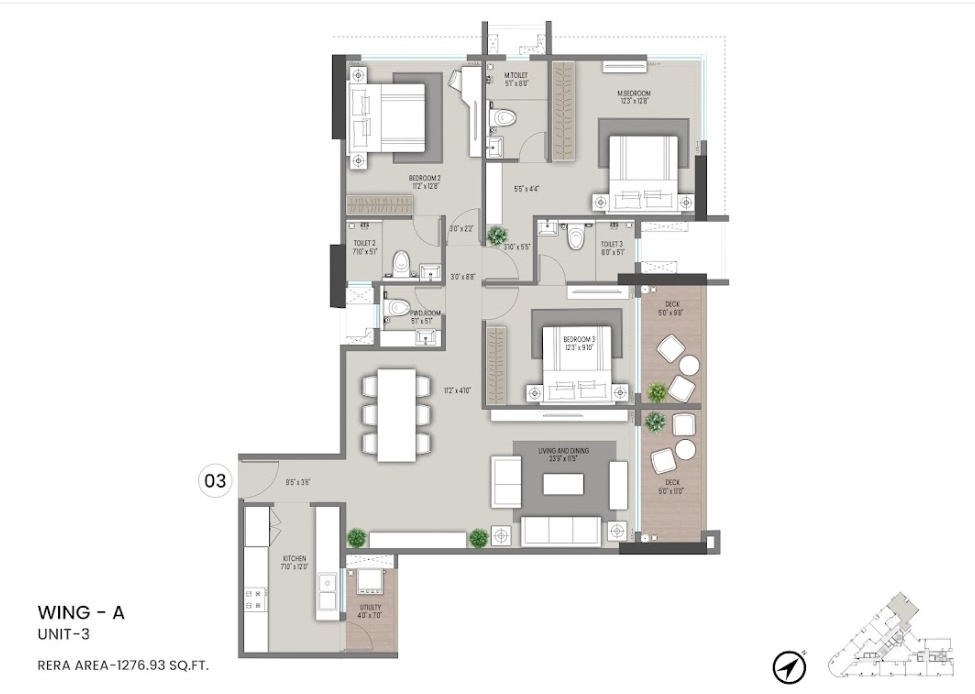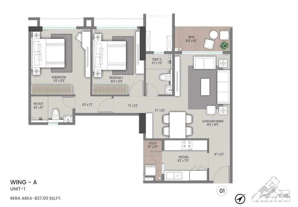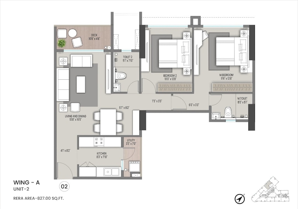 This two-and-a-half-bedroom, three-bathroom Flats in Jogeshwari East, Mumbai offers a comfortable living space of 557 square feet with a pleasant road view from the 9th floor of a 19-story building.