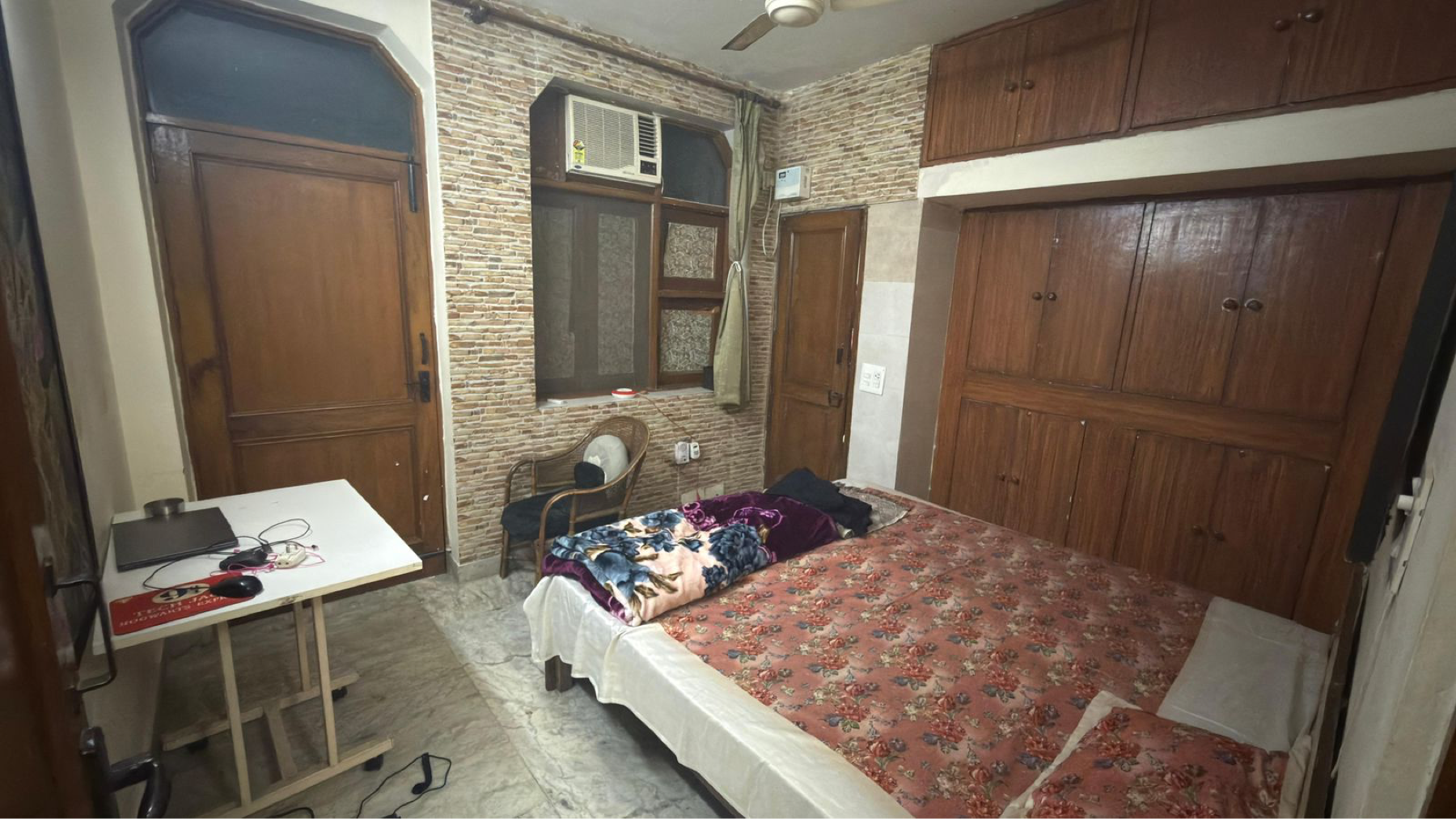 This furnished 1 bedroom, 1 bathroom builder floor in Shivalik Colony, Delhi offers a comfortable living space with a park view.