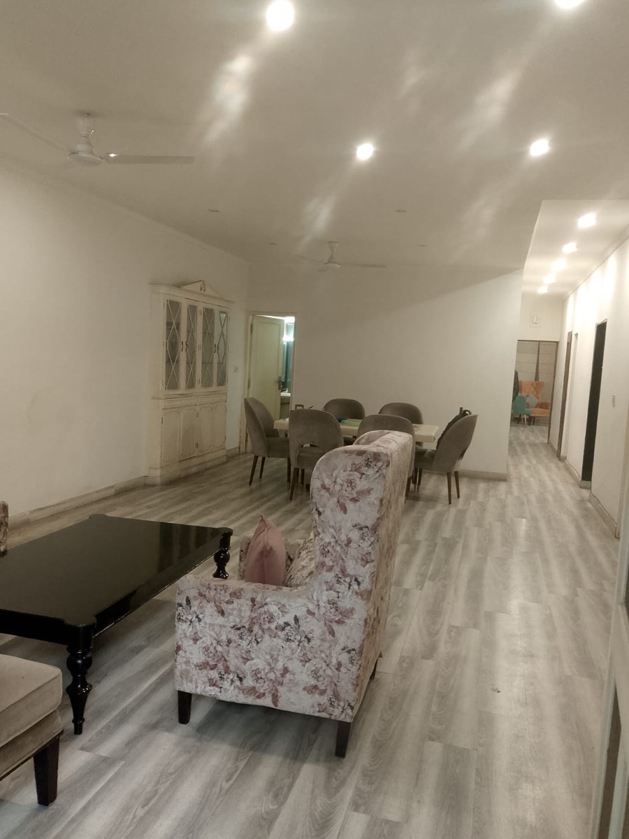 Experience the convenience of a furnished 4-bedroom, 4-bathroom builder floor for rent in the prime location of Defence Colony, Delhi, at 3.25 Lac.