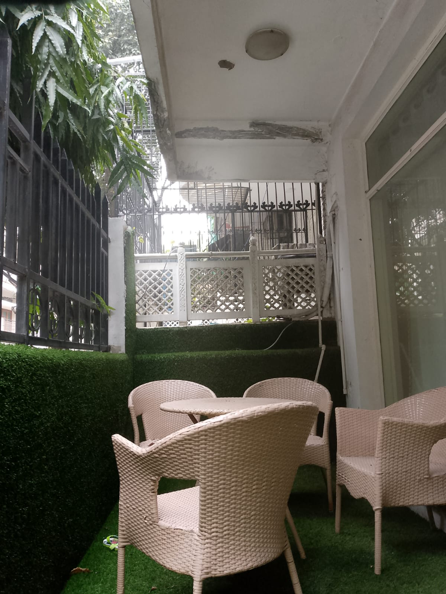 This furnished 2.5-bedroom, 2-bathroom Flats in Sheikh Sarai, Delhi, offers a generous 1000 Square Feet of living space with a pleasant garden view from its balcony.