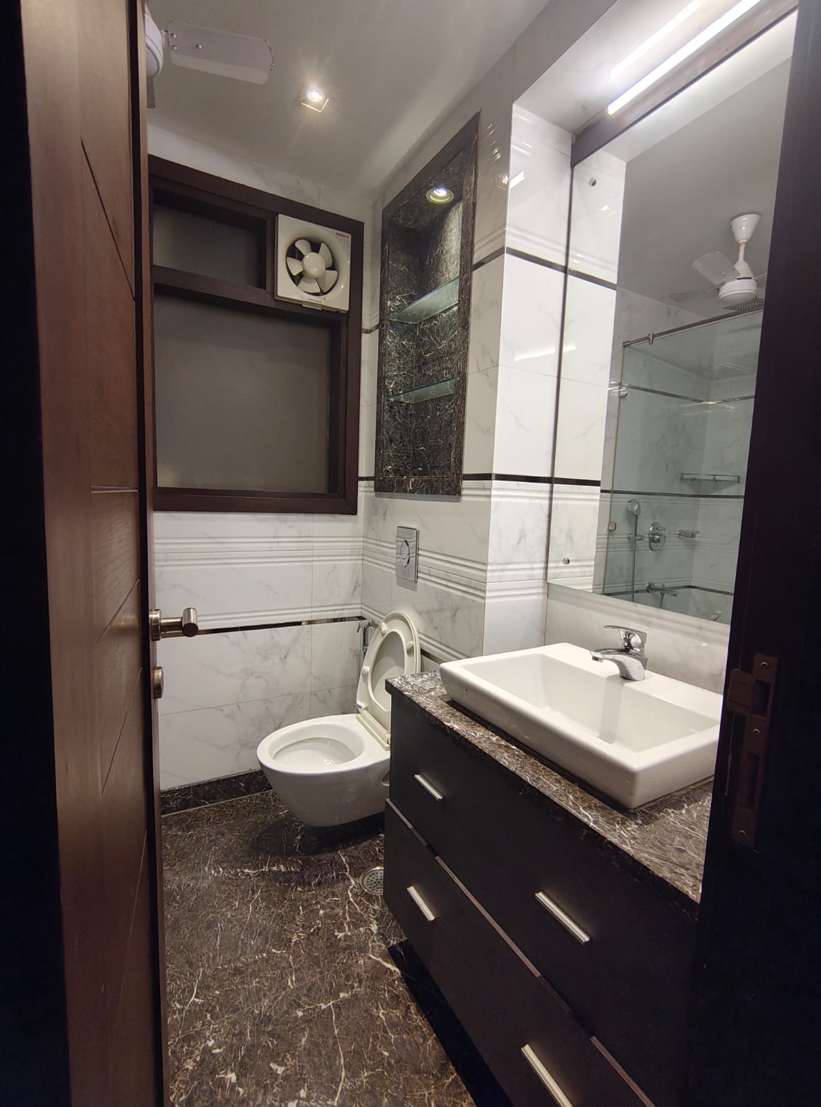 A newly built 3-bedroom, 3-bathroom builder floor is available for rent at 75 thousand in East Of Kailash, Delhi.