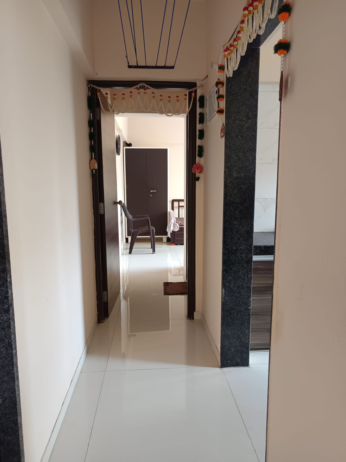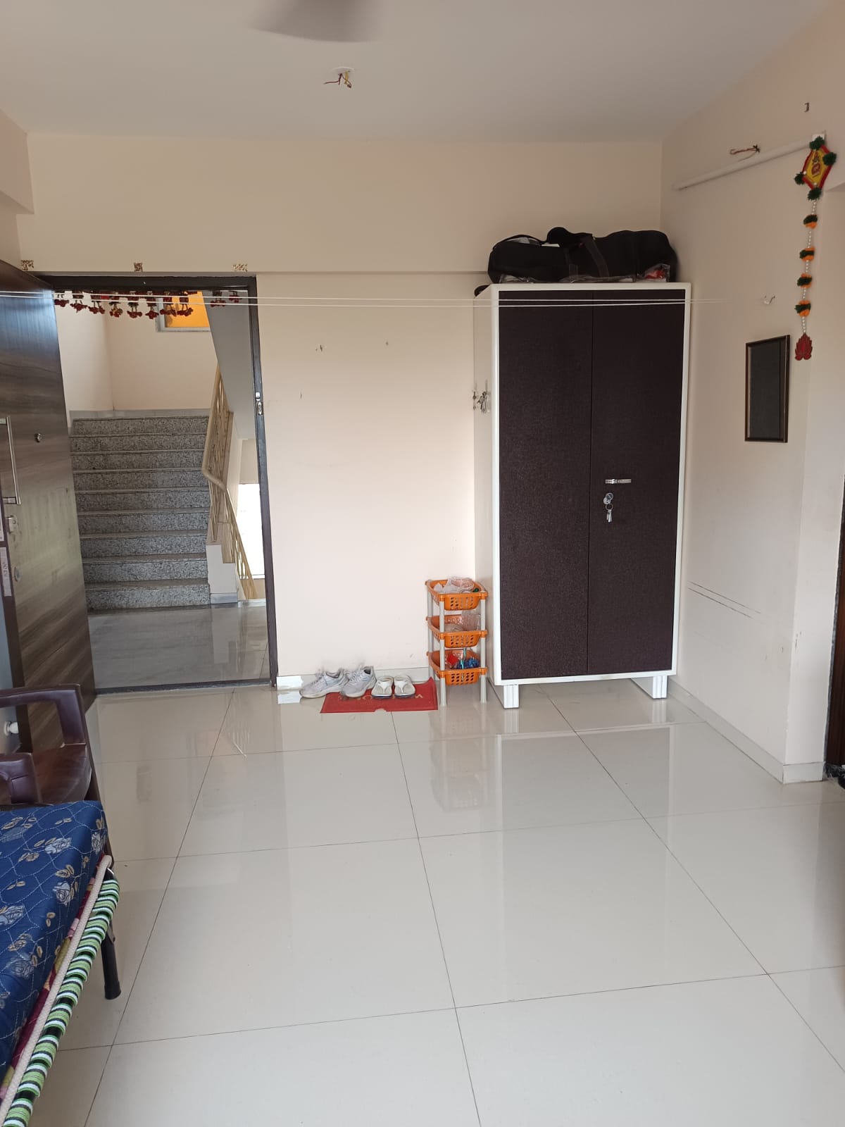 • Located in Akash Shakti Sunny Residency, this semi-furnished home is situated on the fourth floor of a seven-story