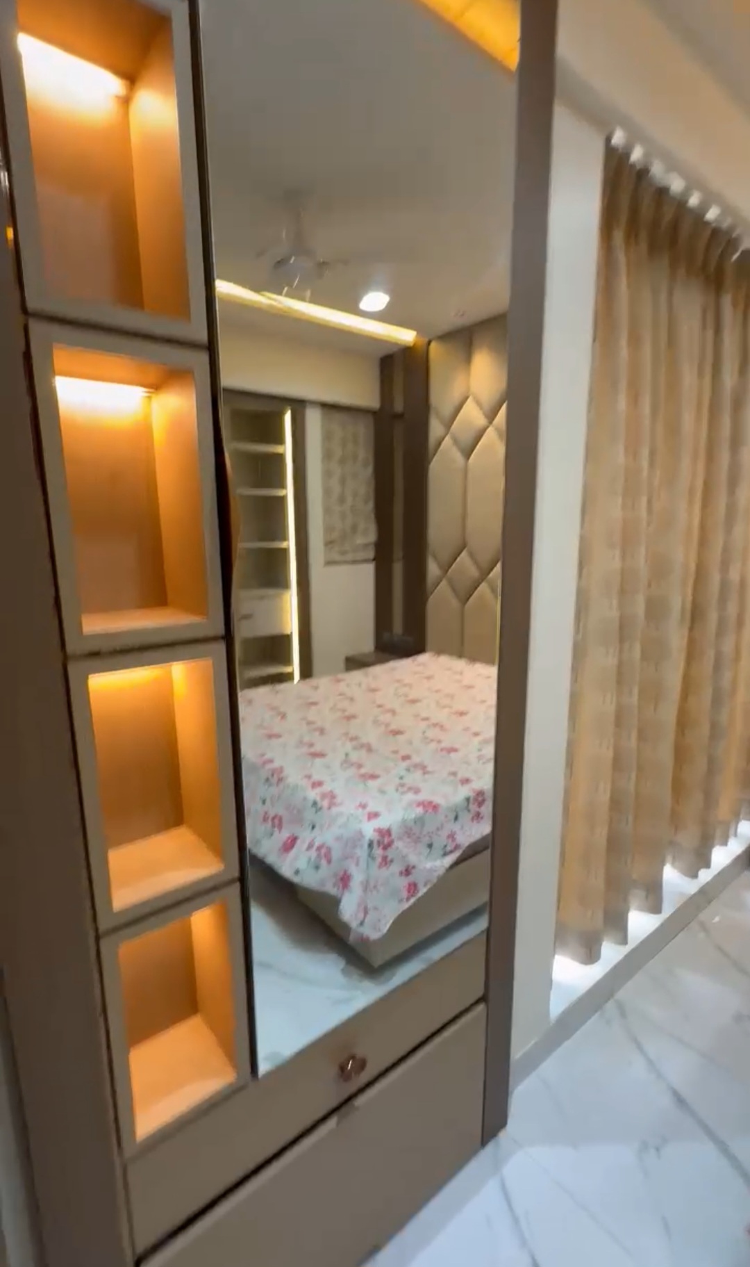 This furnished two-bedroom, two-bathroom Flats in Thane West offers 1050 square feet of living space on the eleventh floor with a stunning lake view.