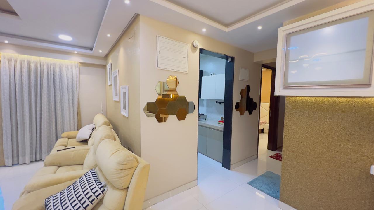 Enjoy a refined lifestyle in this furnished 2.5-bedroom, 2-bathroom Flats located on the 9th floor of the Cosmos Lounge in Manpada, Thane, offering a generous 1200 Square Feet of living space with a peaceful Garden View.