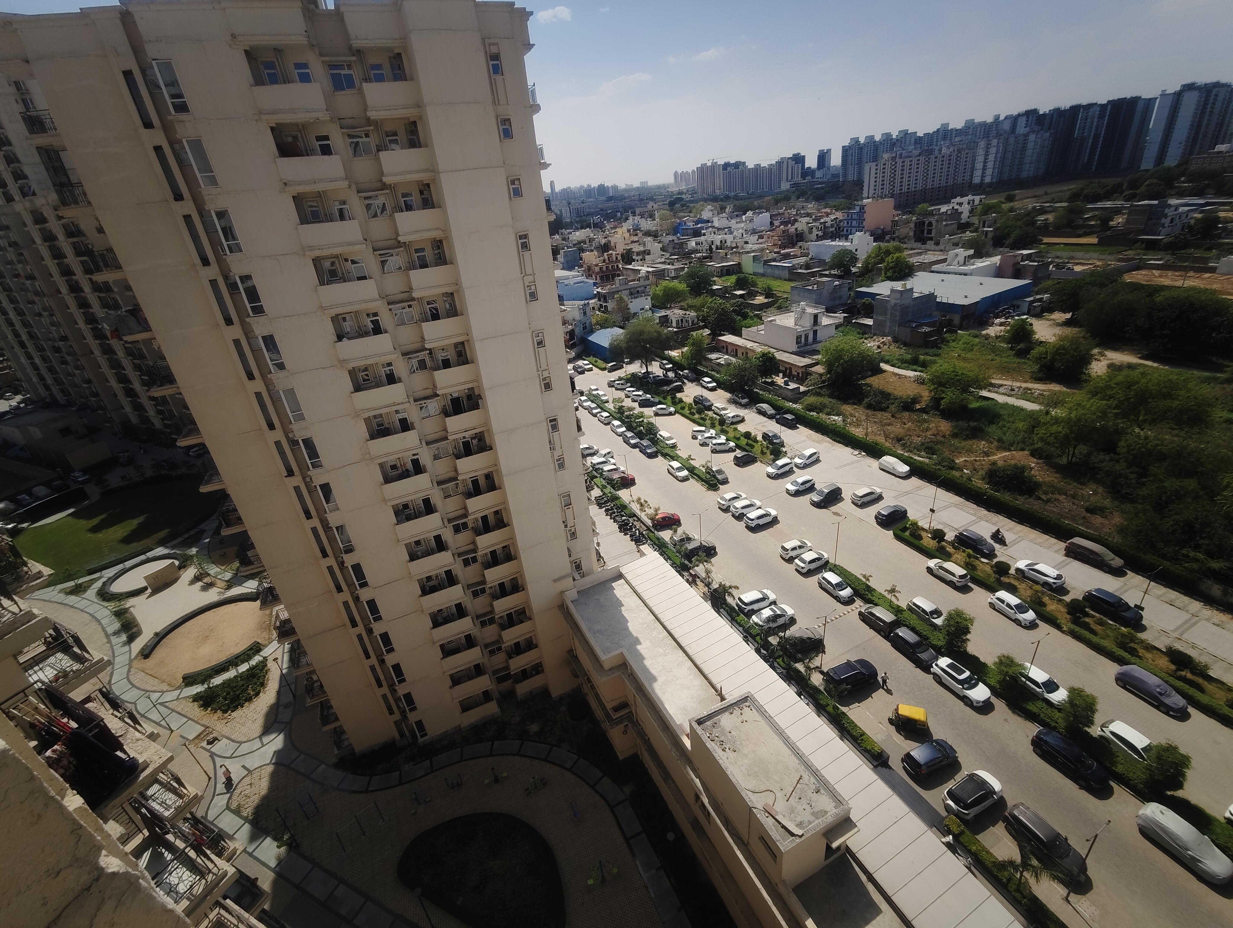 An expansive park view greets you from the sixth floor of this furnished two-bedroom, two-bathroom Flats in SG Andour Heights, Sector 71, Gurgaon.