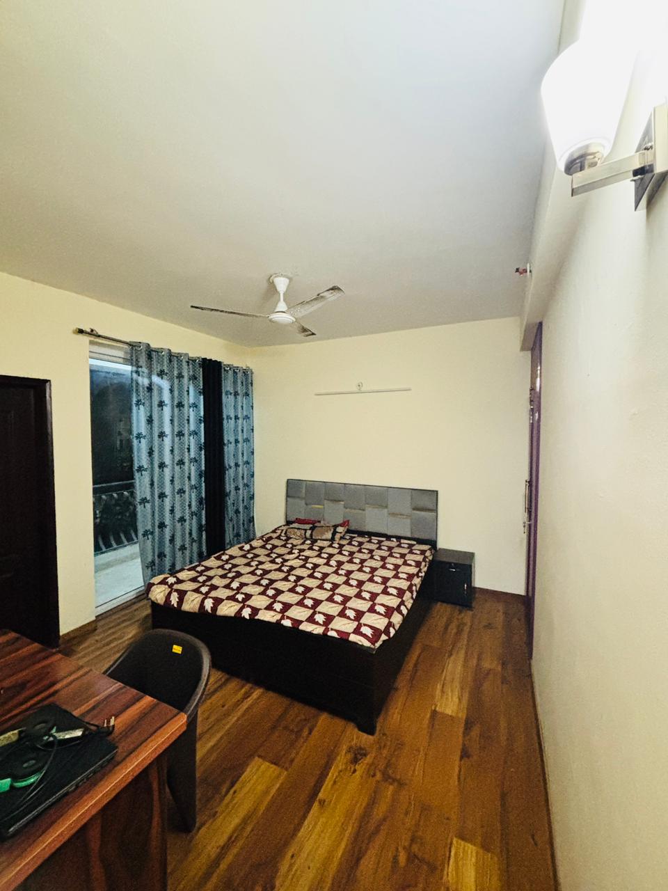 A 1 RK furnished Flats in Aims Golf City, Sector 75, Noida is available for rent at 18 thousand per month, perfect for female tenants seeking a well-ventilated living space with a refreshing park view.
