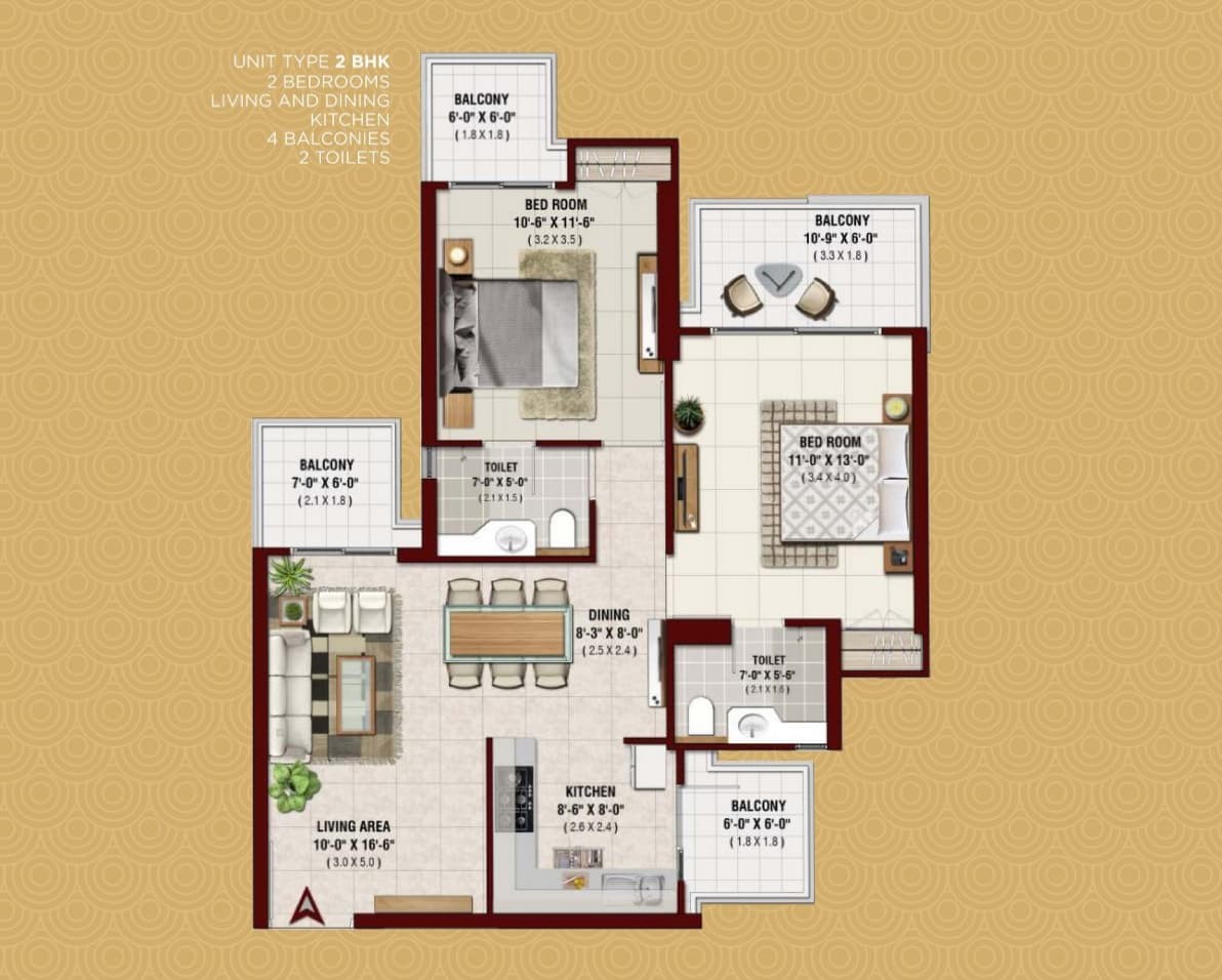 • 1050 Sq.Ft. Built-up Area