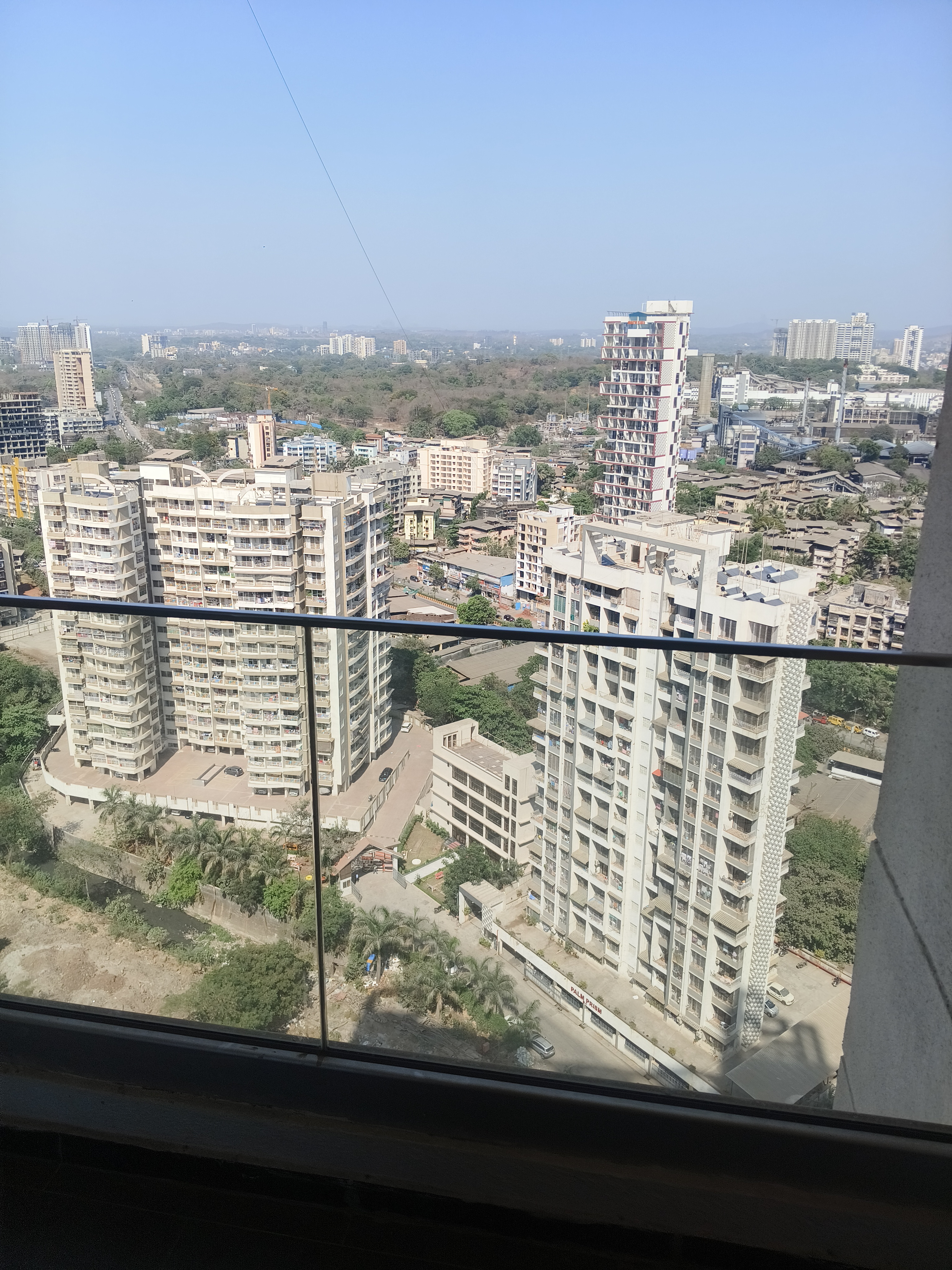 • Located on the 5th floor of the 7-story Dedhia Golden Park II, this semi-furnished home offers a pleasant park view and is situated