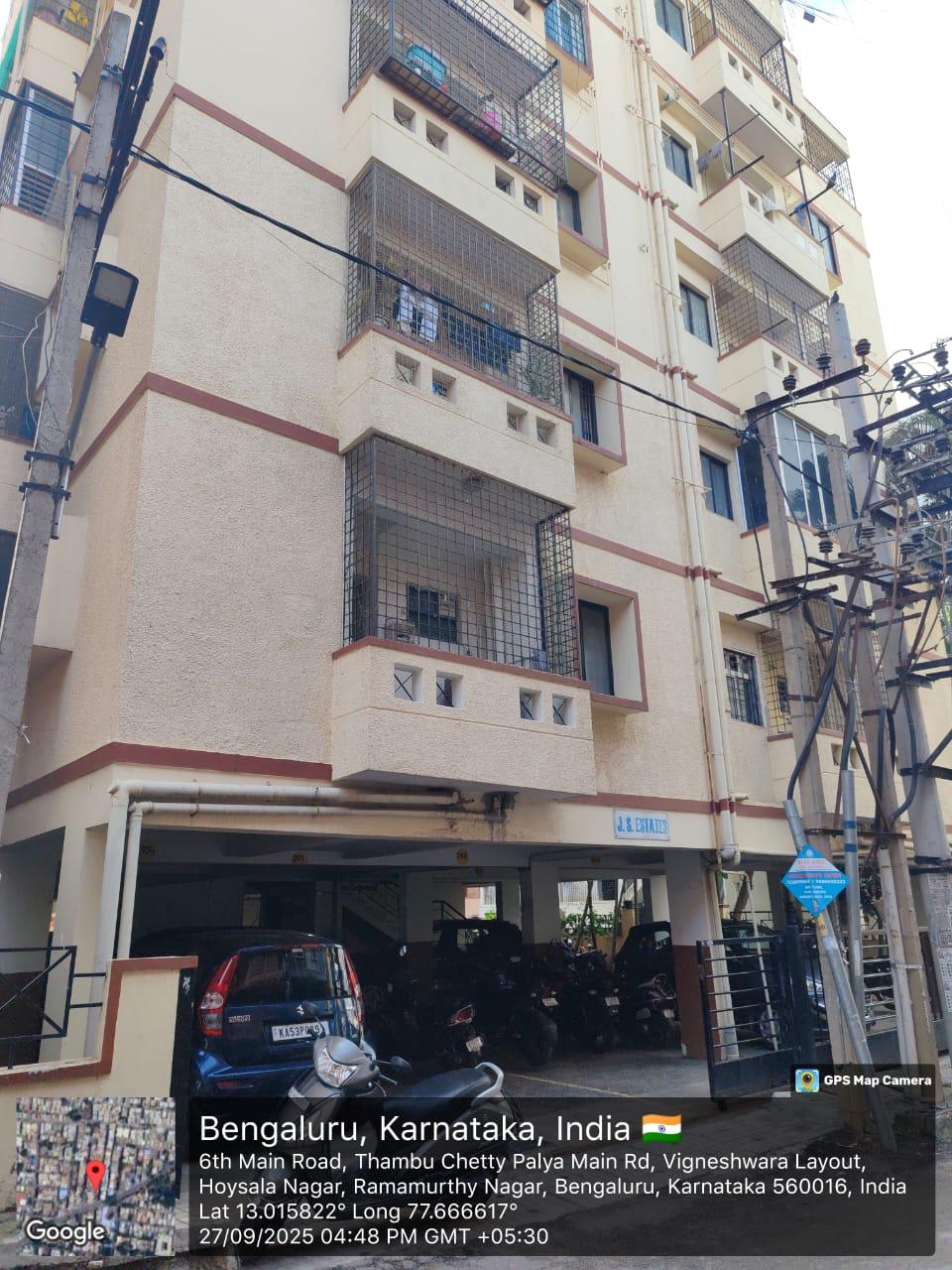 This semi-furnished two-bedroom Flats in JS Estates Flats, Ramamurthy Nagar, Bangalore, offers a comfortable living space for 65 lakh.