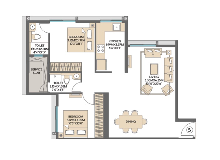 This two-bedroom, two-bathroom Flats in Kandivali East, Mumbai offers a contemporary living experience within the Godrej Bliss Kandivali project.