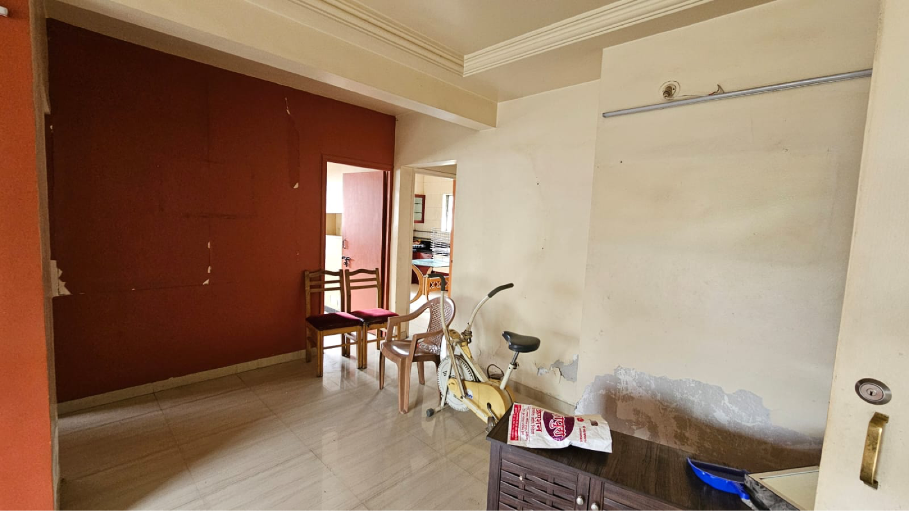 This one-bedroom Flats in Pune Santosh Nagar, located in Gangotree Pooja Niwas, offers a well-ventilated and comfortable living space for rent at 25 thousand per month.
