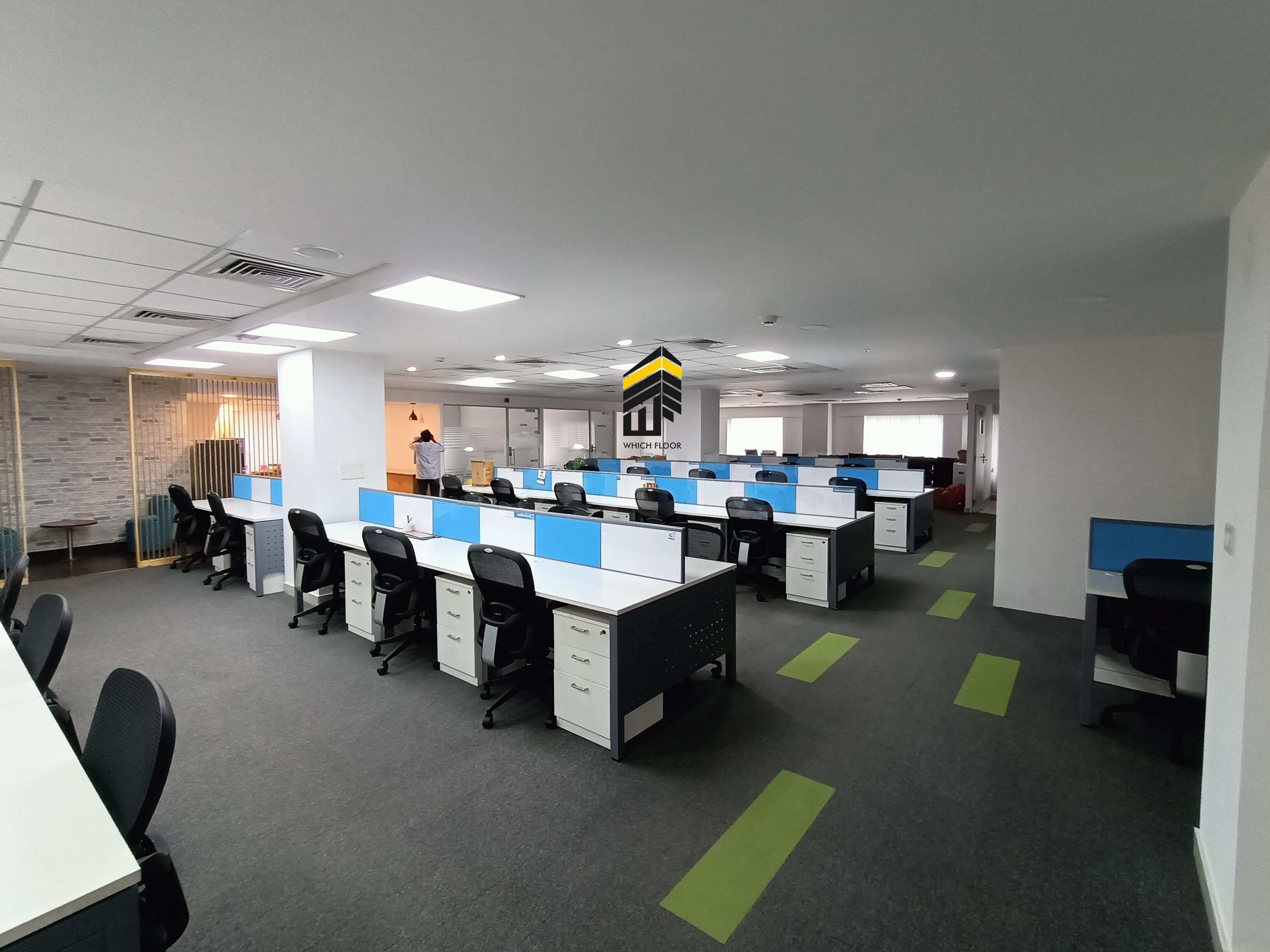 This 7600 square feet office space, available for rent at 5.7 Lac per month, is situated on the 8th floor and offers a tranquil Garden View, creating a pleasant working environment.
