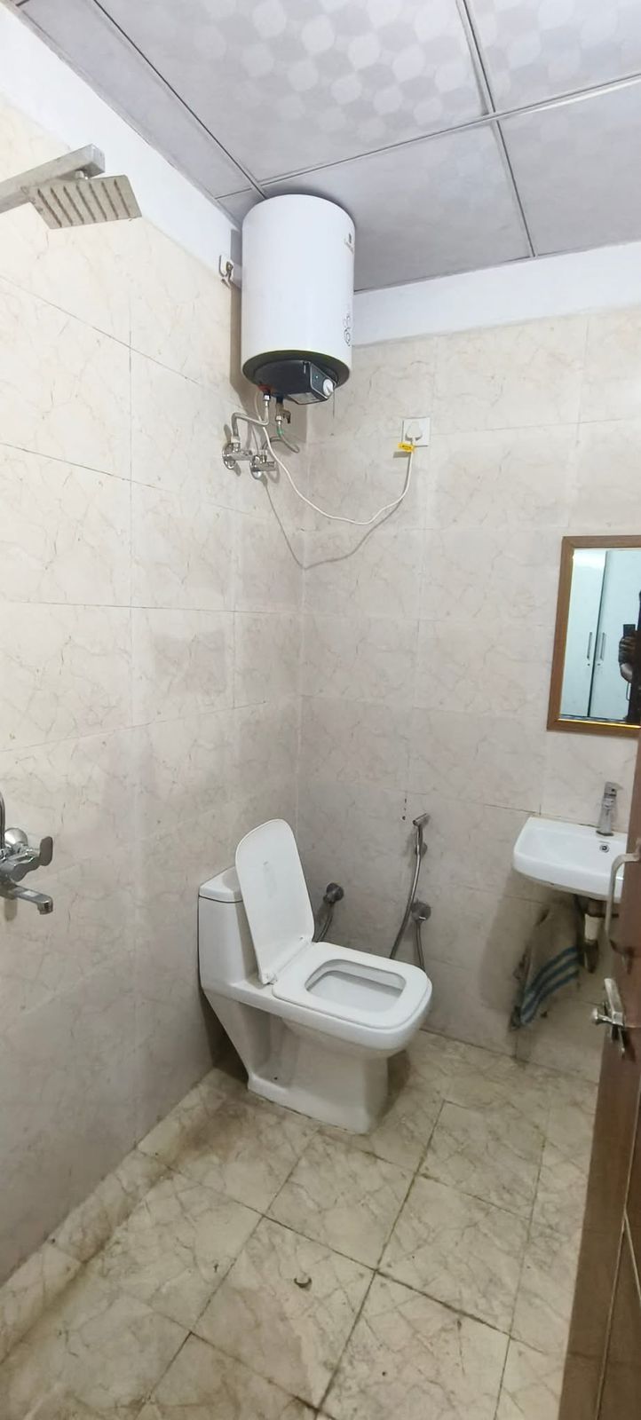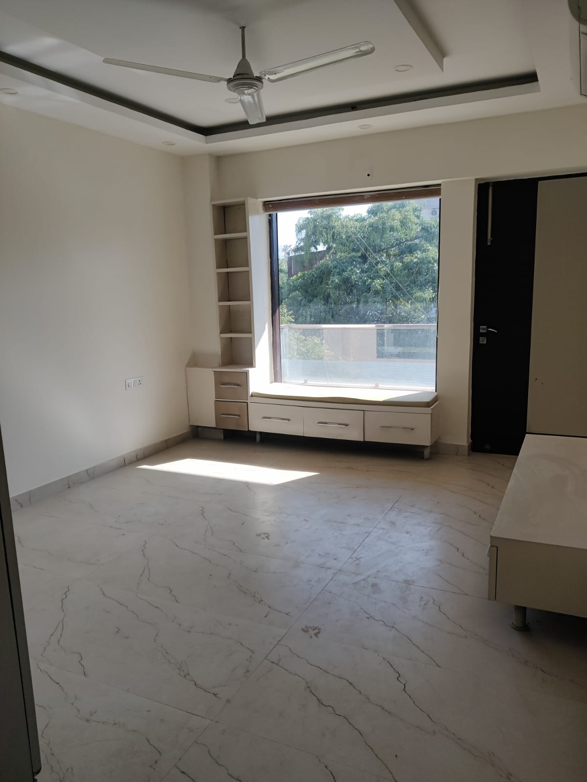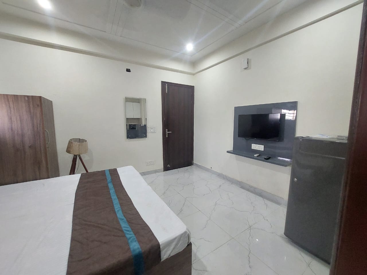 This furnished one-room-kitchen builder floor in Sector 31, Gurgaon, offers a beach view from its second-floor position in a four-story building.
