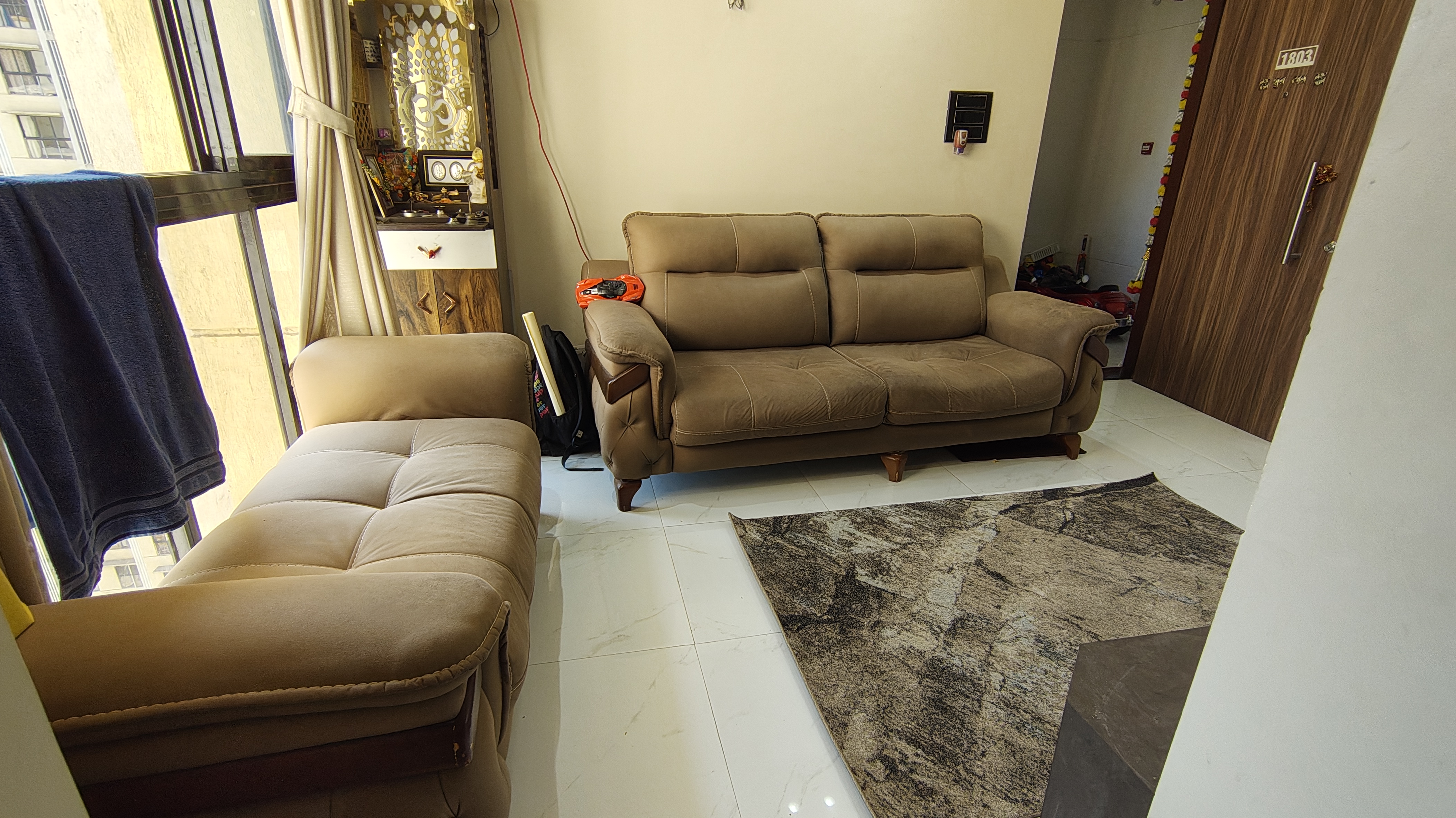 • Located on the 18th floor of Runwal Gardens, this 357 square feet home offers a pleasant road view and ample natural sunlight.