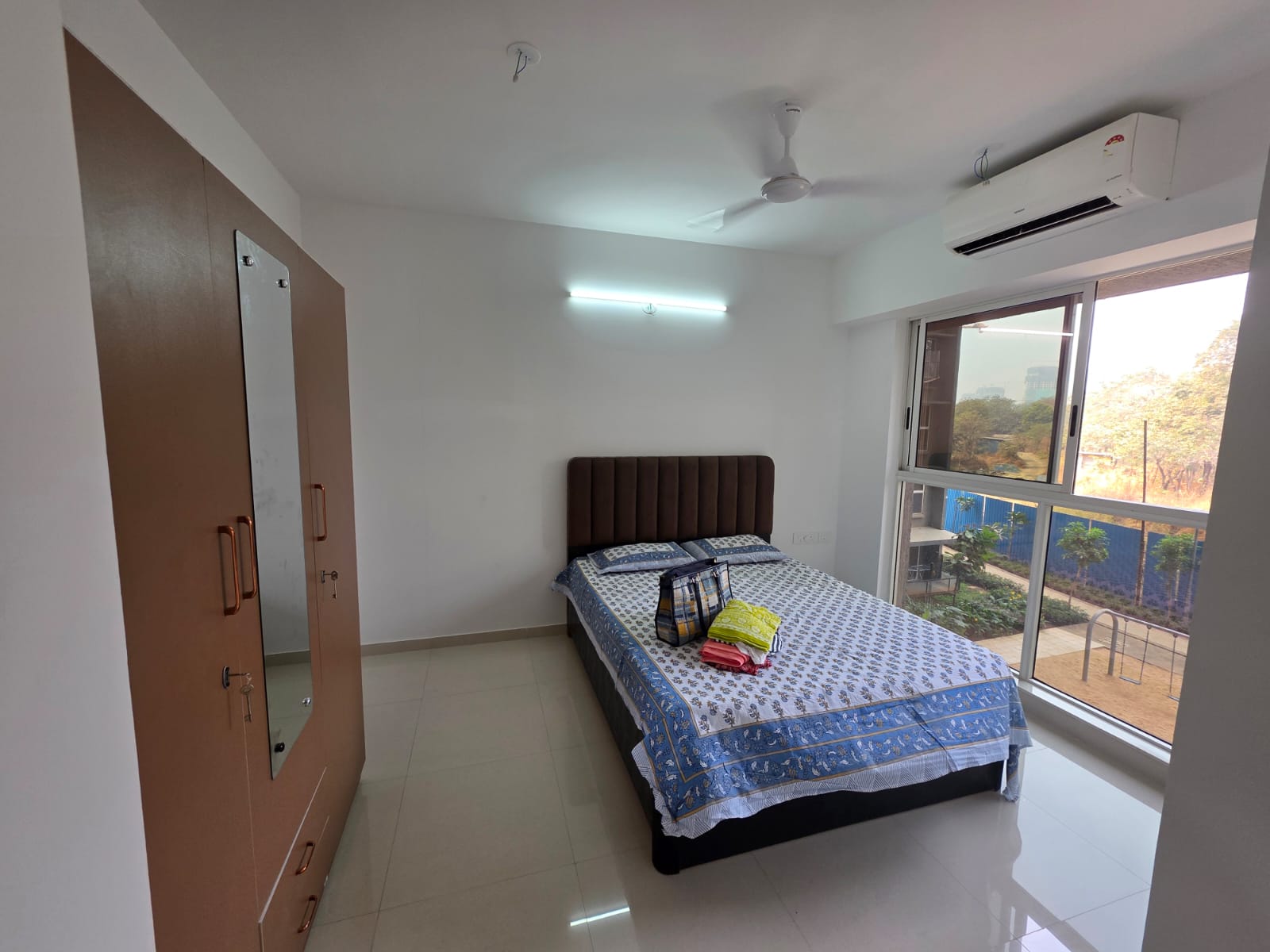 This furnished 2-bedroom, 2-bathroom Flats in Lodha Palava City, Dombivli East, Thane, offers a park view from the sixth floor of an 18-story building, making it an attractive option for those seeking a comfortable and well-equipped living space.