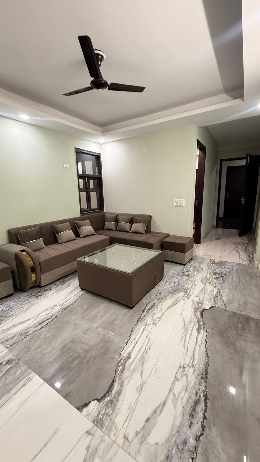 This three-bedroom, three-bathroom builder floor in Chattarpur, Delhi, offers a desirable living experience in the newly built Palm Residency.