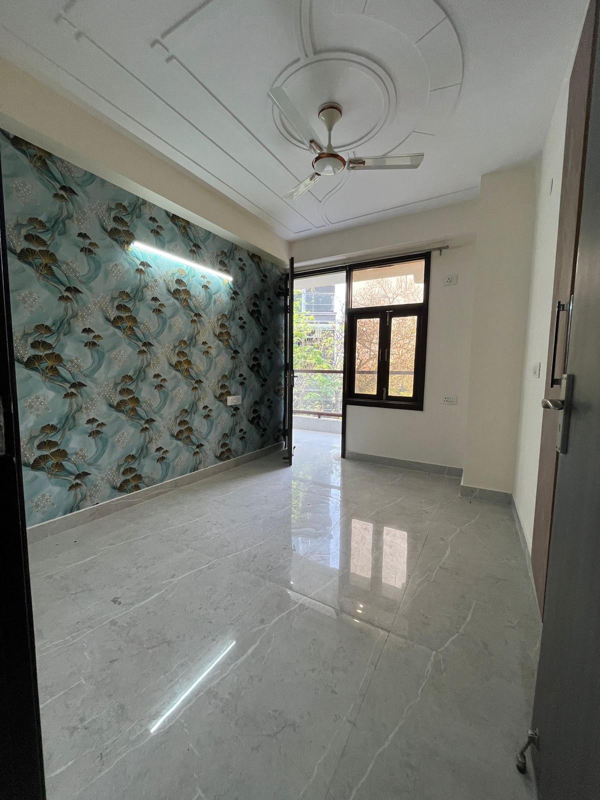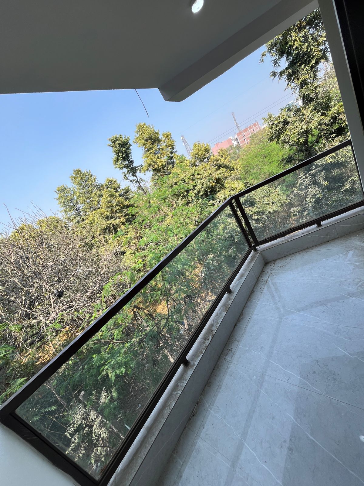 This newly built 3-bedroom, 2-bathroom builder floor in Chattarpur, Delhi, offers a comfortable living space with plenty of sunlight and a community view from its balcony or terrace, all available for rent at 35000.