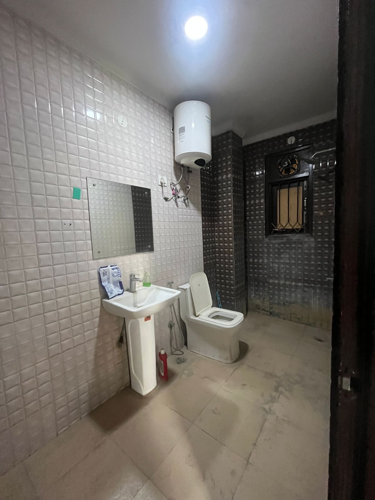 A semi-furnished 3-bedroom builder floor in Rajpur, Delhi, is available for rent at 28 thousand for 130 square yards.