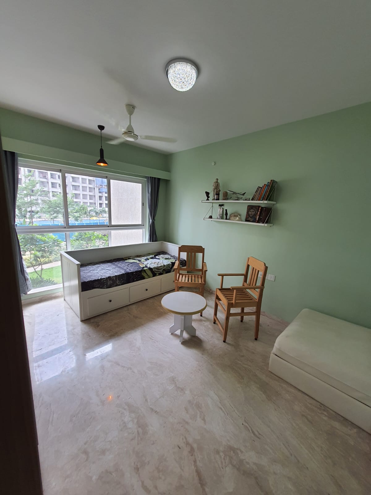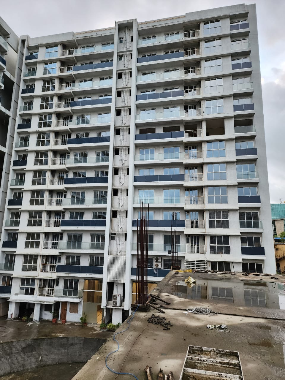 This unfurnished 1-bedroom, 2-bathroom Flats in Powai offers a peaceful garden view from its 9th-floor position in the Crescent Silverwoods project, providing 432 square feet of living space.