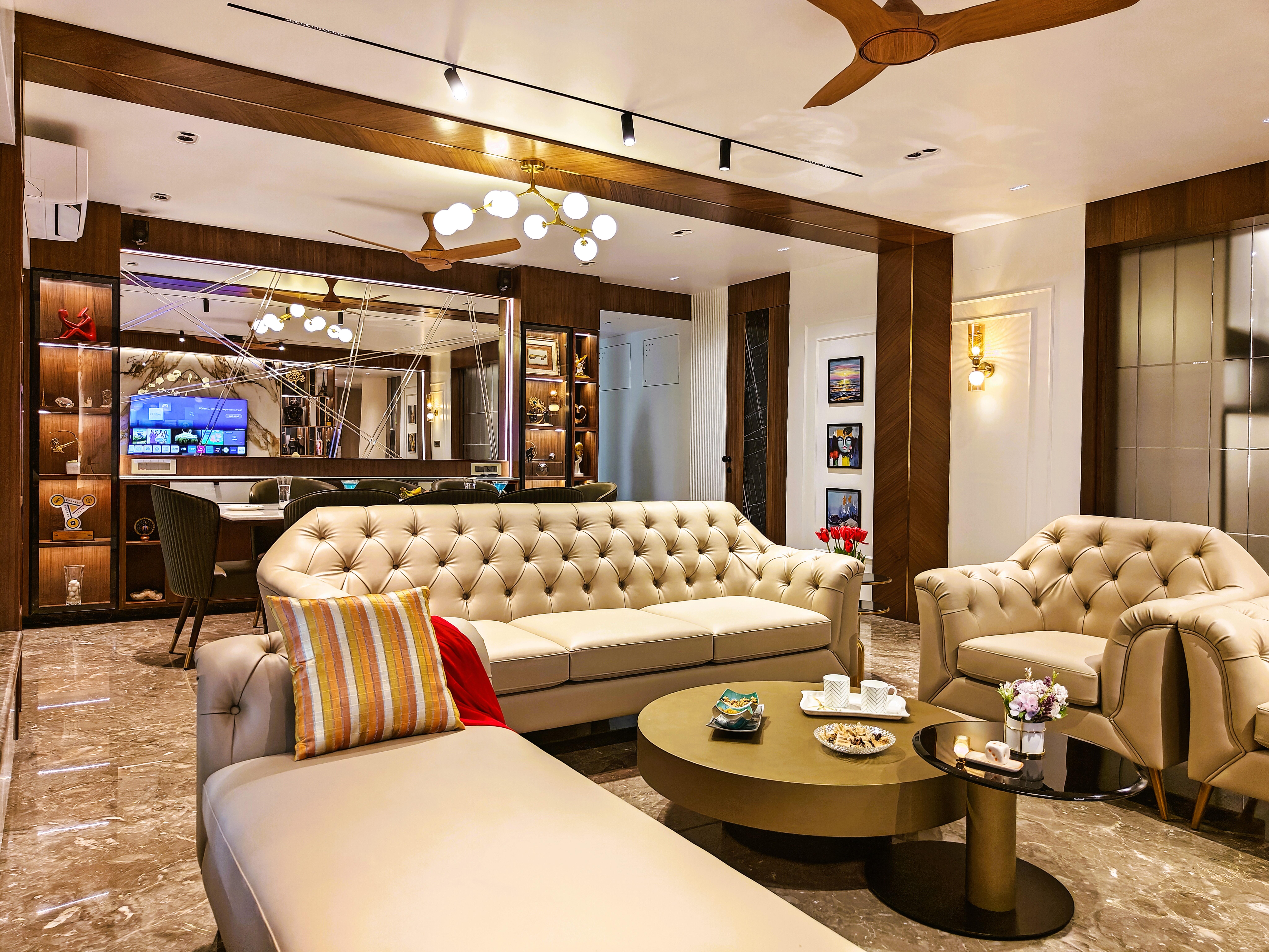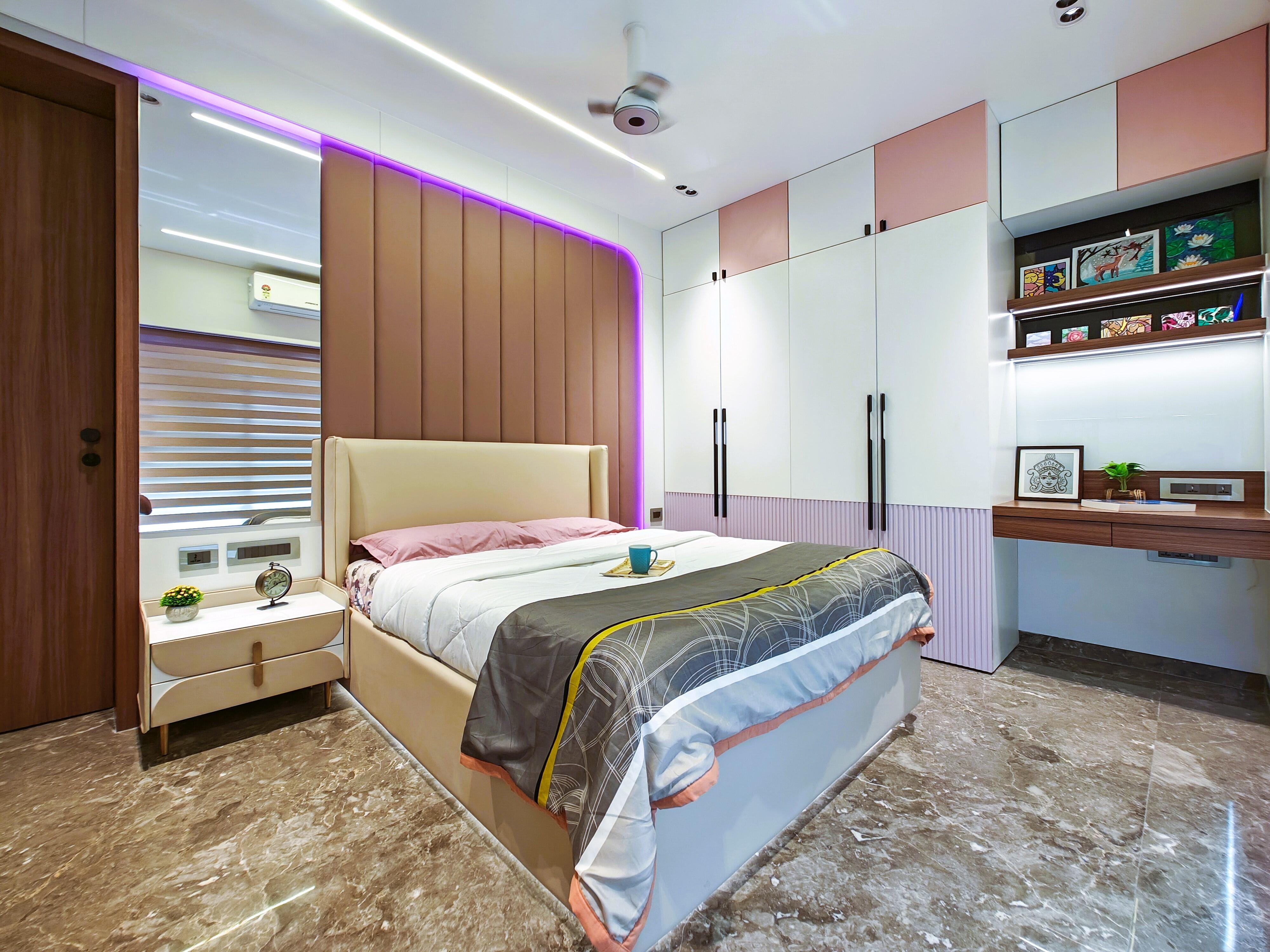 This one-bedroom, two-bathroom Flats in Chandivali, Mumbai, offers a furnished living space with a garden view.