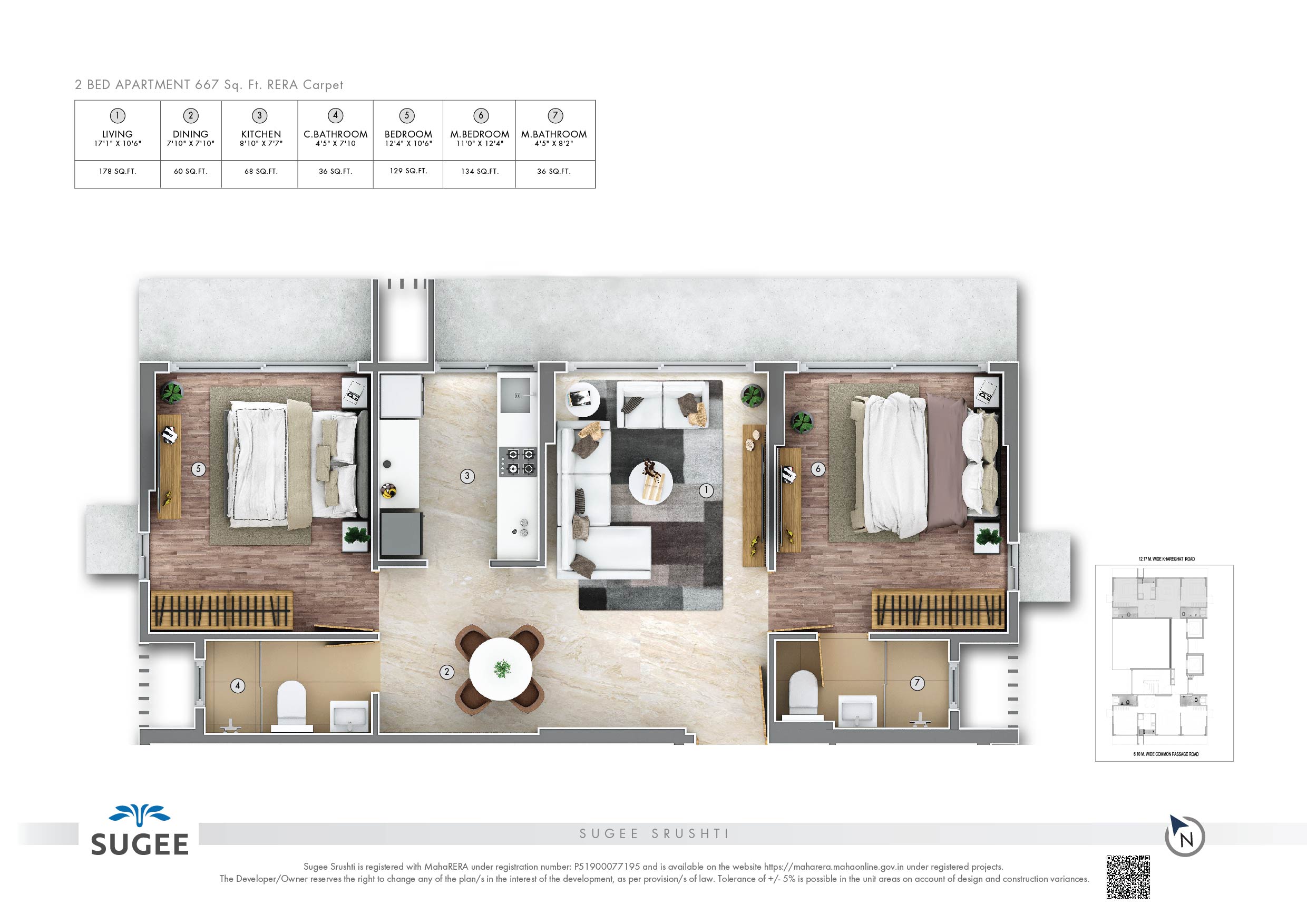 • 667 Sq.Ft. Carpet Area