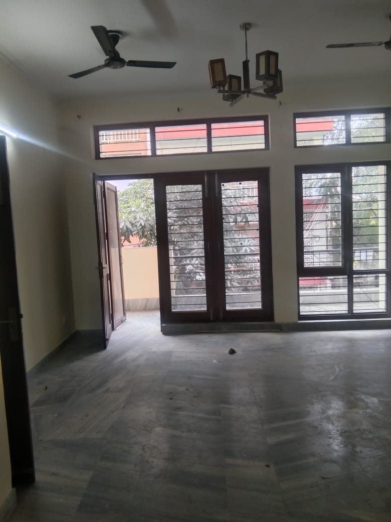 This builder floor for rent offers a bright and airy living experience with plenty of sunlight throughout its 1350 square feet of space, featuring three bedrooms and three bathrooms.