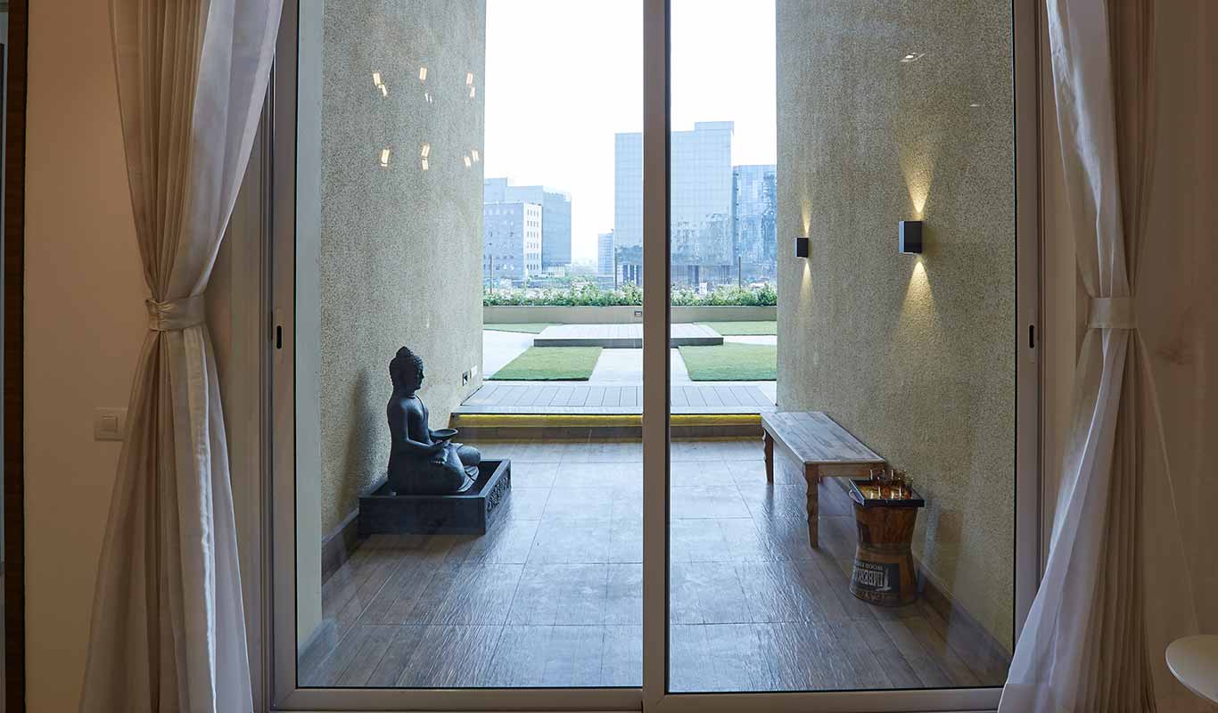Live in a bright and airy 3.5 bedroom, 4 bathroom Flats with a peaceful Garden View from the 10th floor of Gera Trinity Towers in Kharadi, Pune.