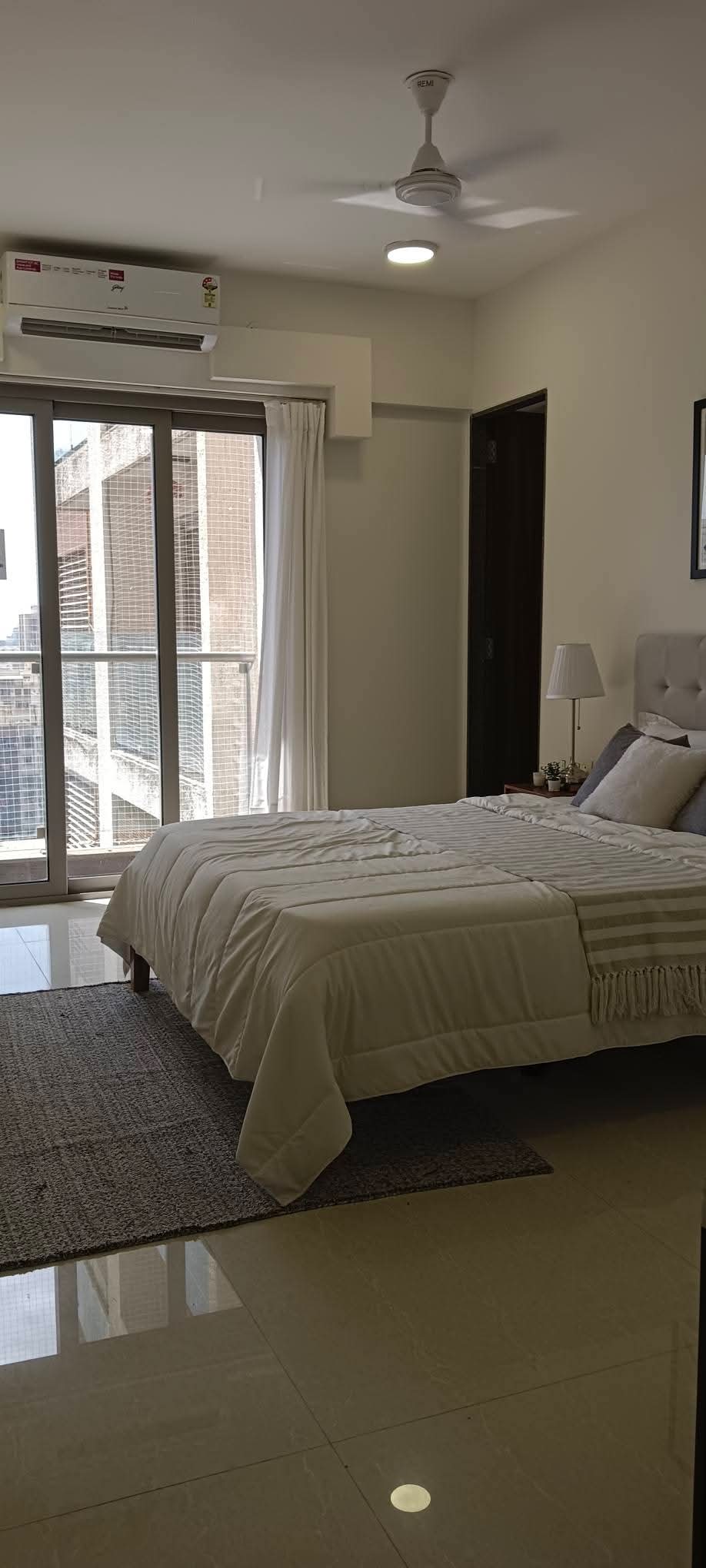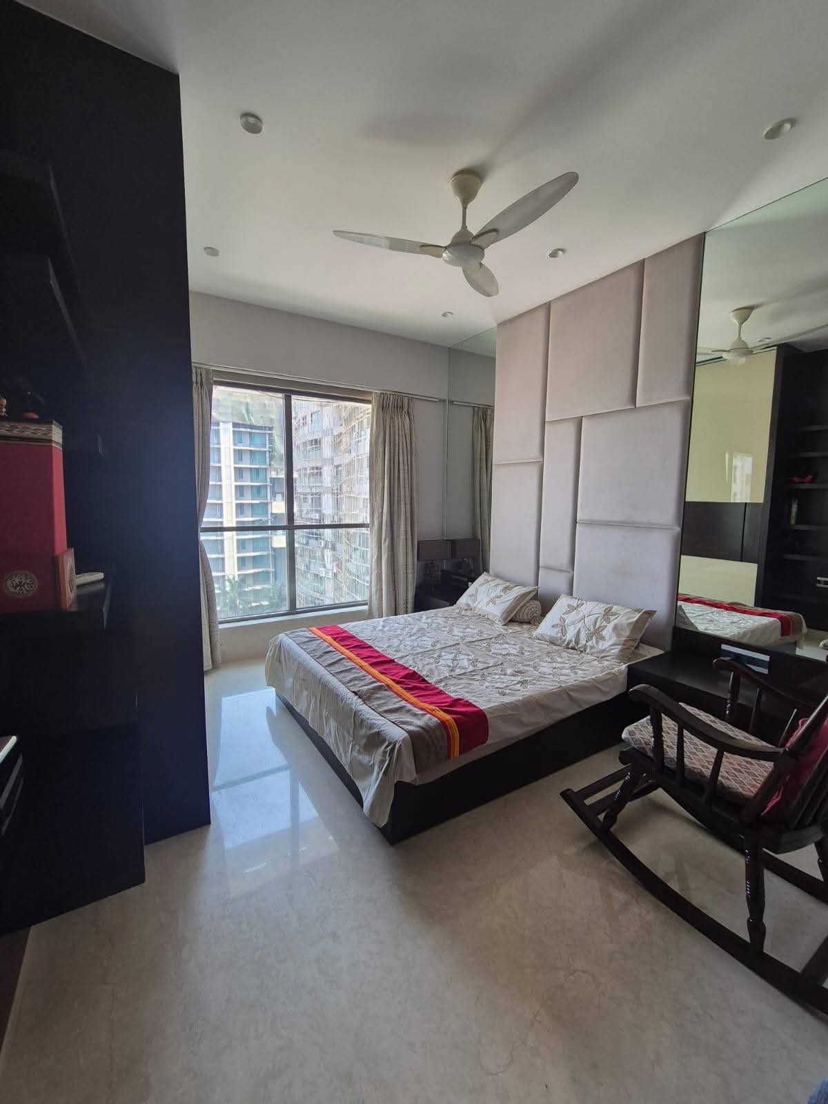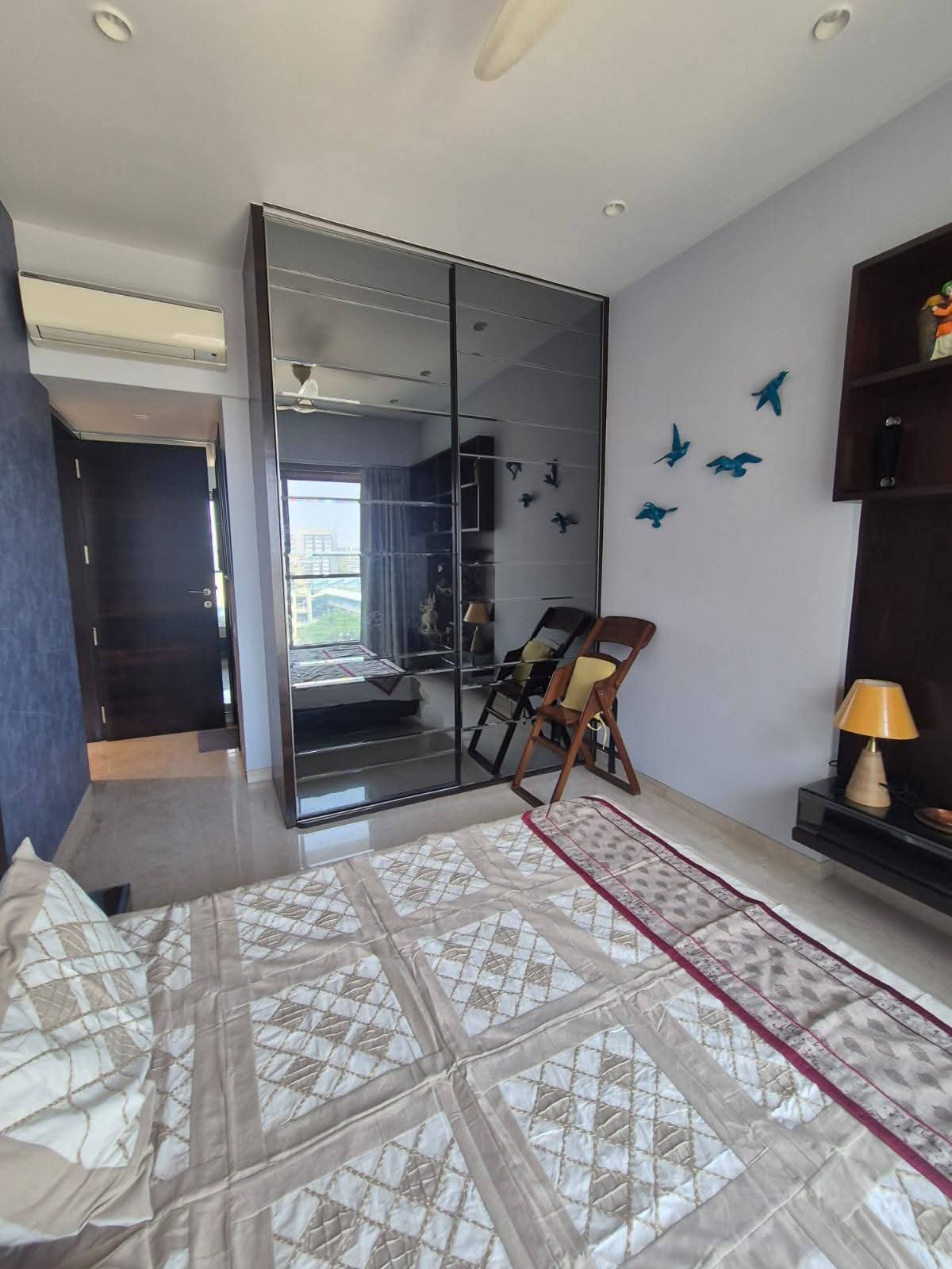 This furnished three-bedroom Flats in Bandra West offers a serene Lake View from its 16th-floor position.