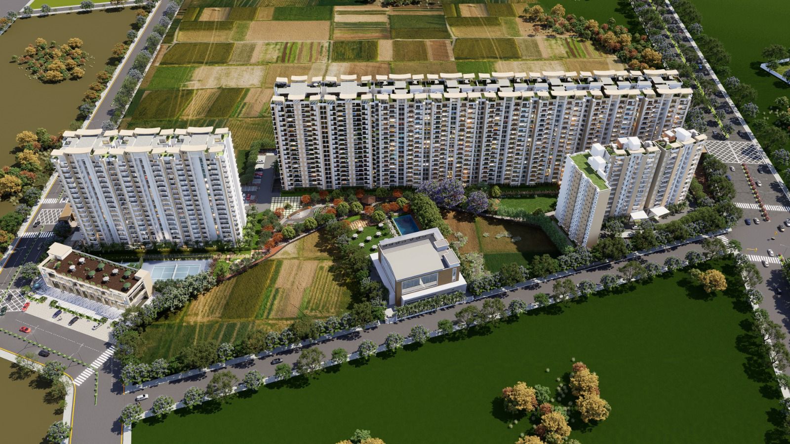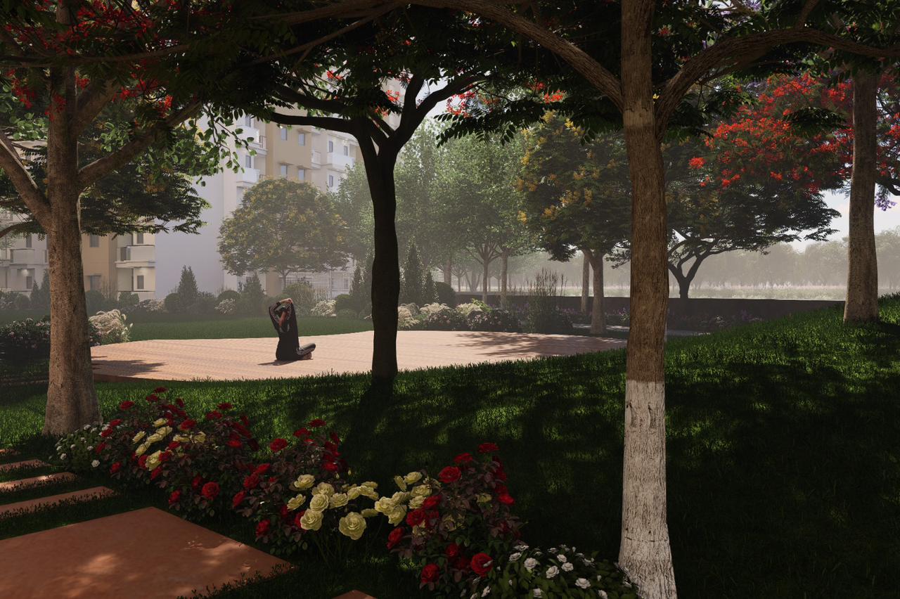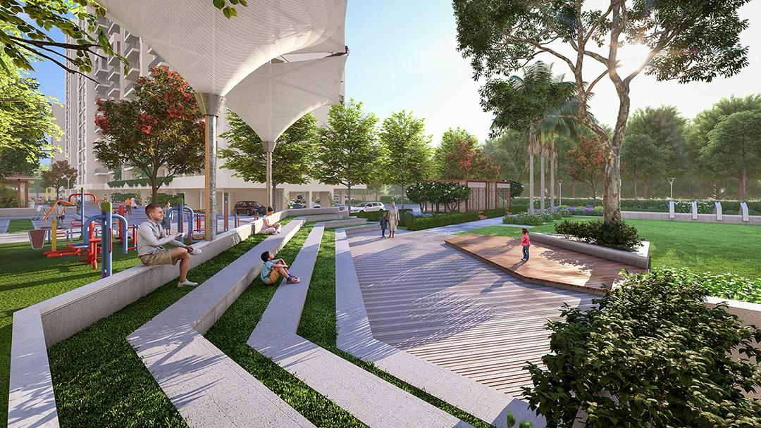 • Spanning 2100 square feet and located on the 7th floor of the 18-story Maya Green Lotus Utsav project, this home offers