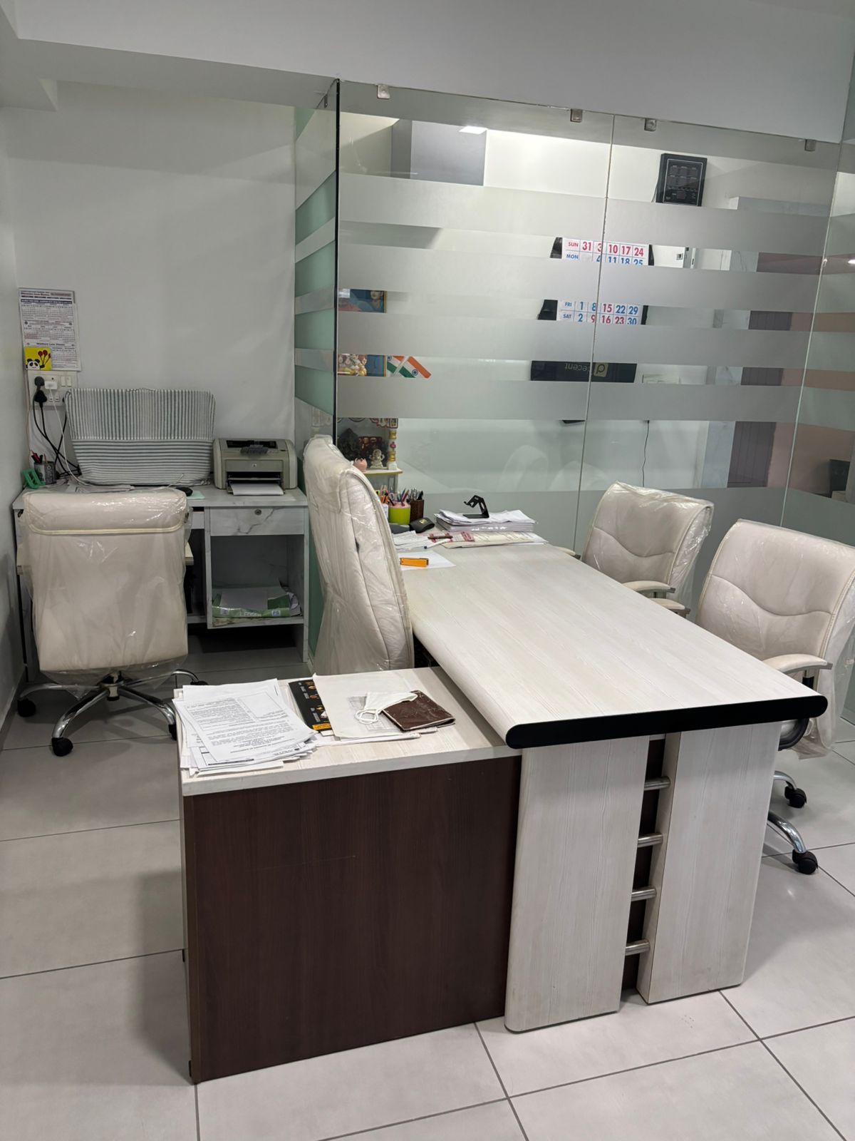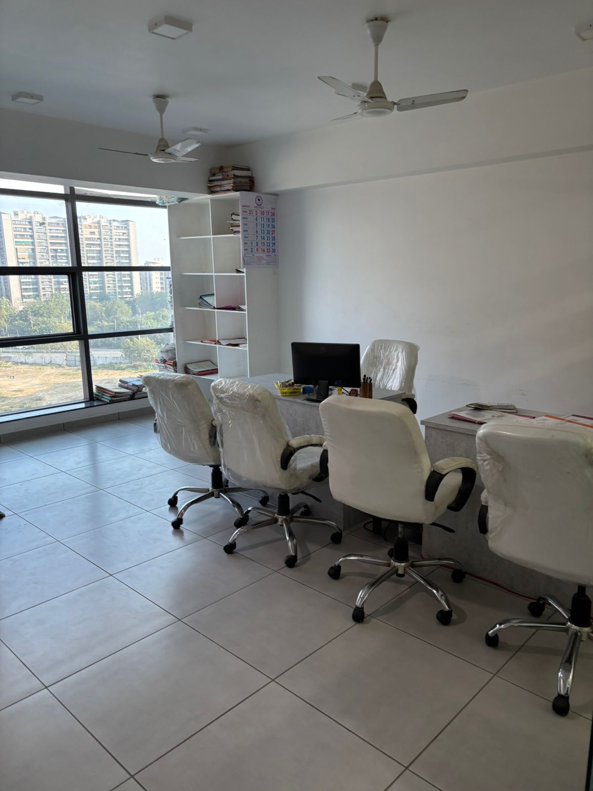 Here is a furnished 765 Square Feet office space on Ambli Road in Ahmedabad, boasting a road view and available for rent at 40 thousand per month.