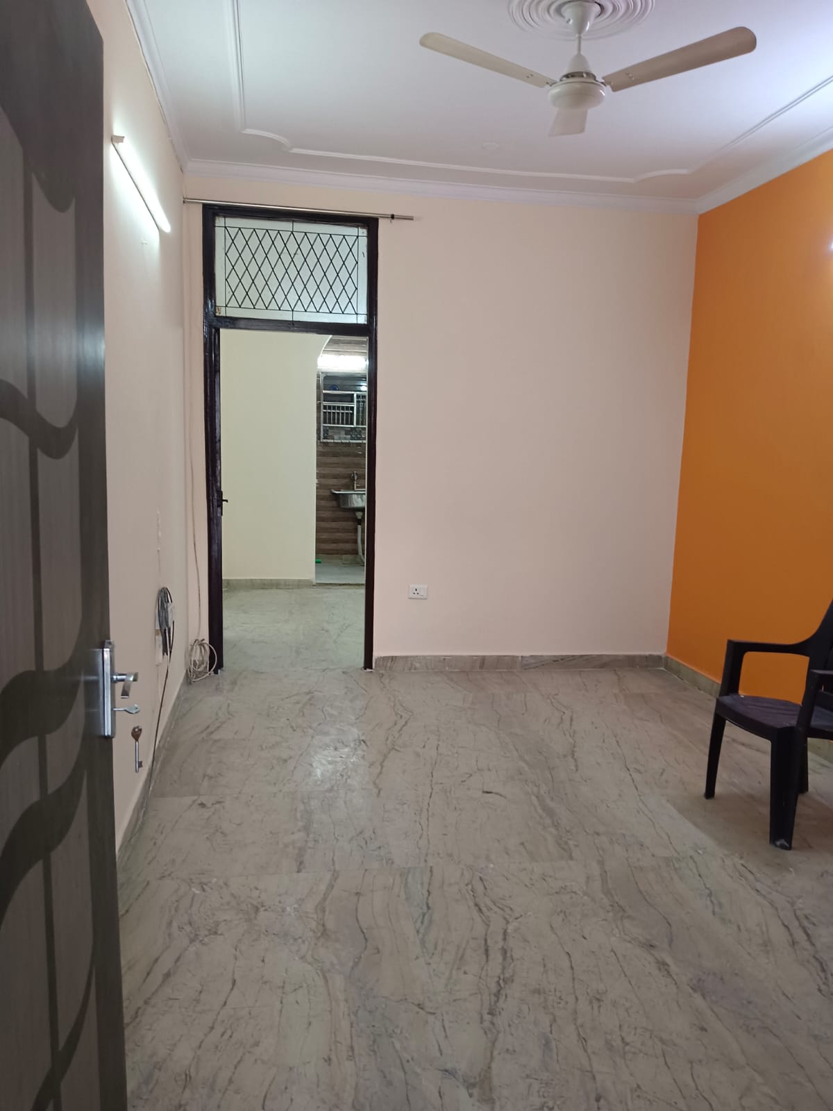 This furnished one-bedroom builder floor in Dayanand Colony offers a practical living solution with its 545 square feet of space.