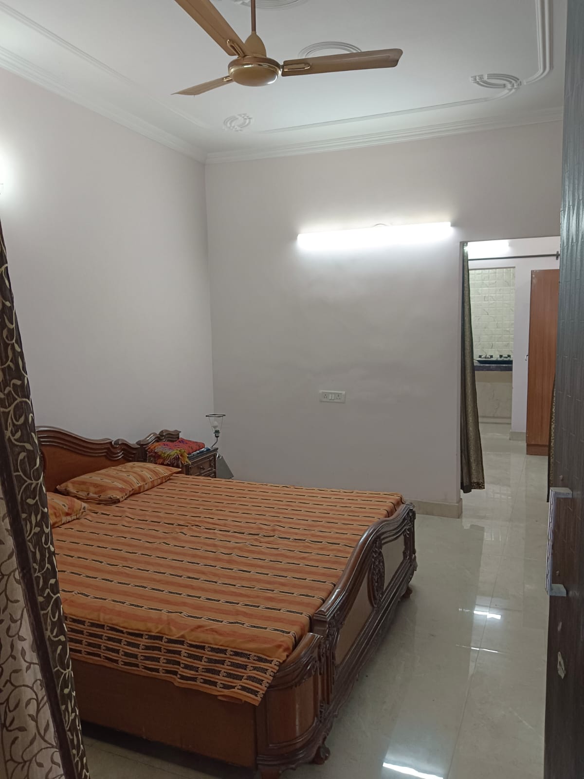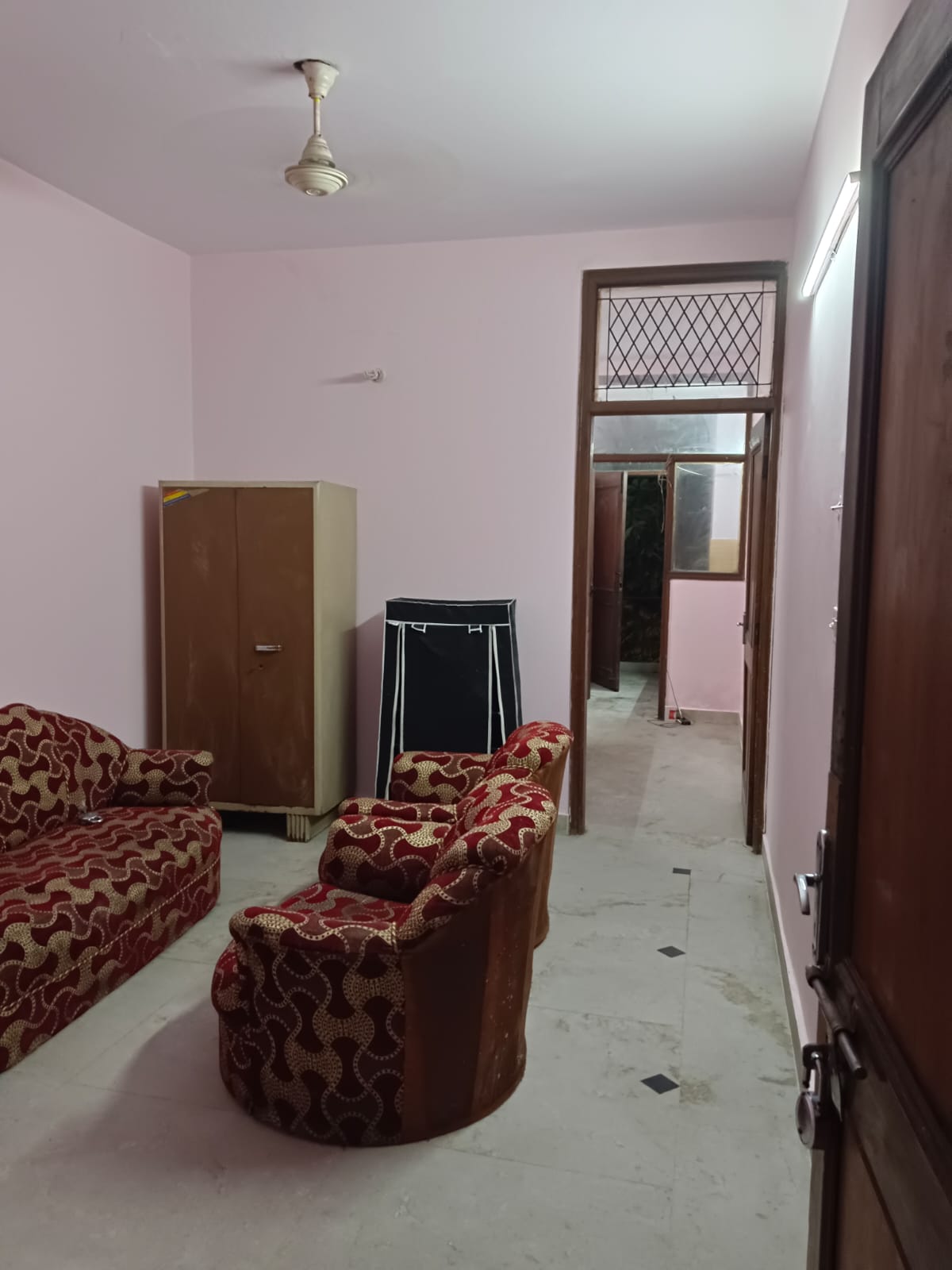 This furnished 1-bedroom, 1-bathroom builder floor in Amar Colony, Delhi, presents a practical living solution for a monthly rent of 25 thousand.