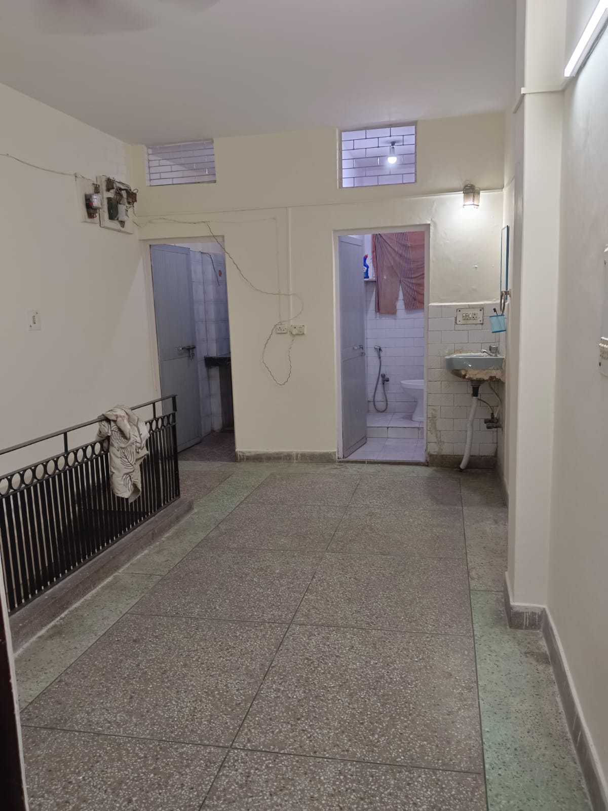 This unfurnished one-bedroom, one-bathroom builder floor in Delhi`s Lajpat Nagar 4 presents a practical living solution with 567 square feet of space.