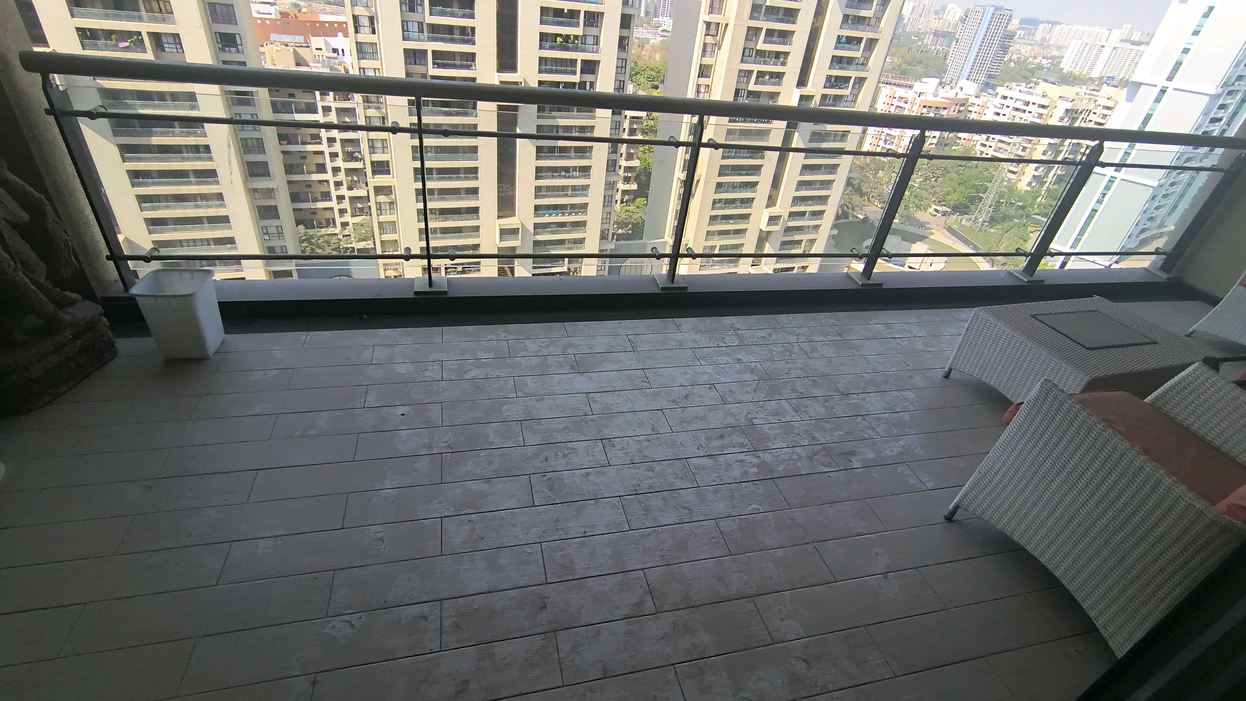 This spacious 3400 square feet, four-bedroom, five-bathroom furnished Flats in Panchshil One North, Magarpatta City, Pune, offers a luxurious living experience with a serene garden view from the 18th floor of a 20-story building.