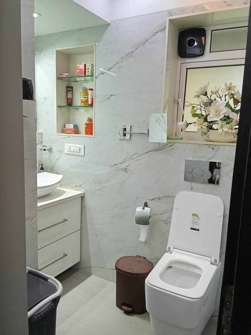 • This Vastu-compliant unit is positioned on the ninth floor, offering a pleasant road view and the convenience of a