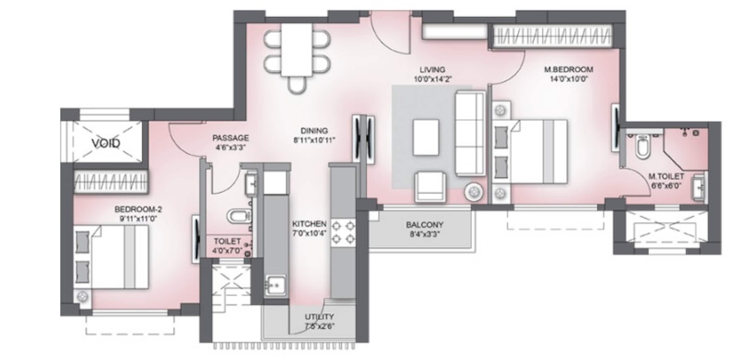 • This unfurnished 2-bedroom, 2-bathroom Flats at Paradise Sai World Dreams spans 711 square feet and faces the road, giving you a clear