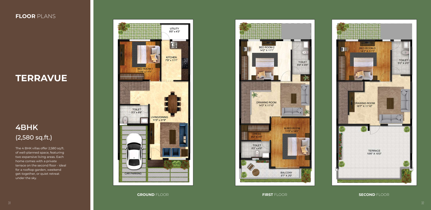 This spacious villa offers a luxurious lifestyle with expansive living areas and a serene garden view, priced at 2.6 crore.