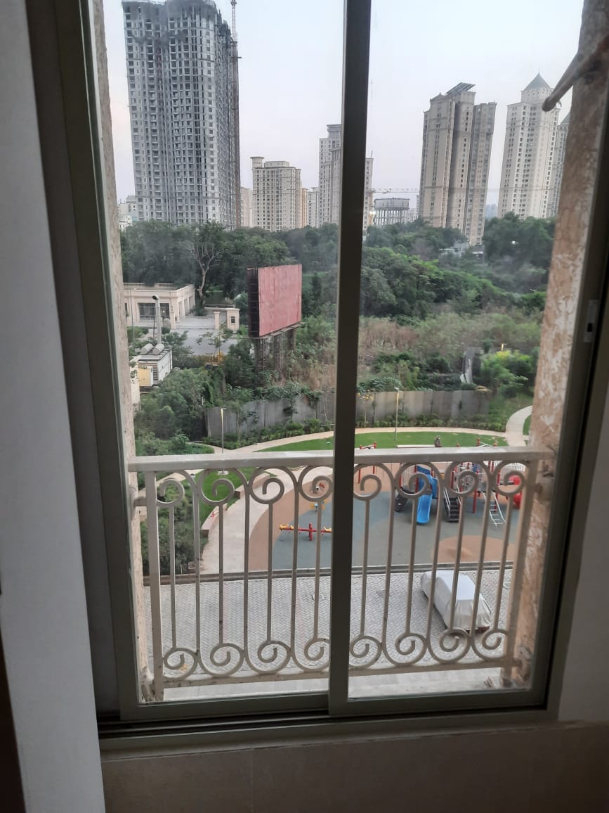 • Located on the 9th floor of Hiranandani Estate Princeton, this semi-furnished apartment offers a peaceful park view and