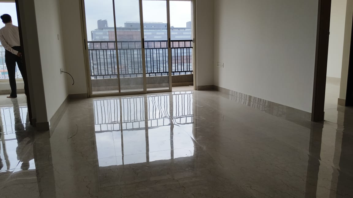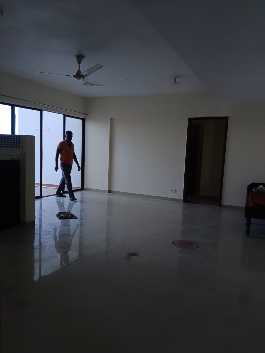 • This semi-furnished, three-bedroom, three-bathroom apartment is located on the seventh floor of the Rutuparna Flats, a project known for its amenities.