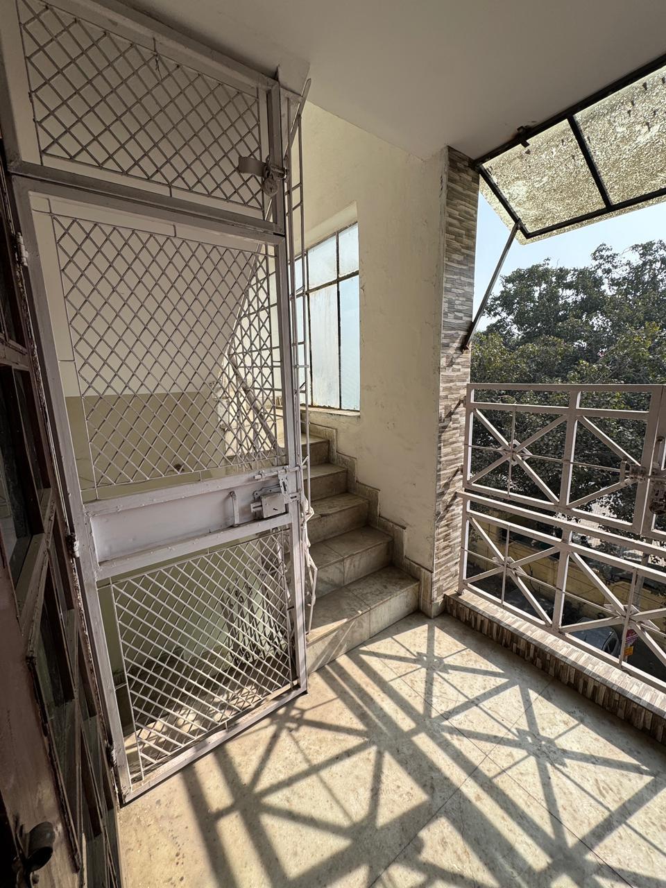 A builder floor in Malviya Nagar, Delhi, is available for rent, offering a serene road view from the first floor of a four-story building.