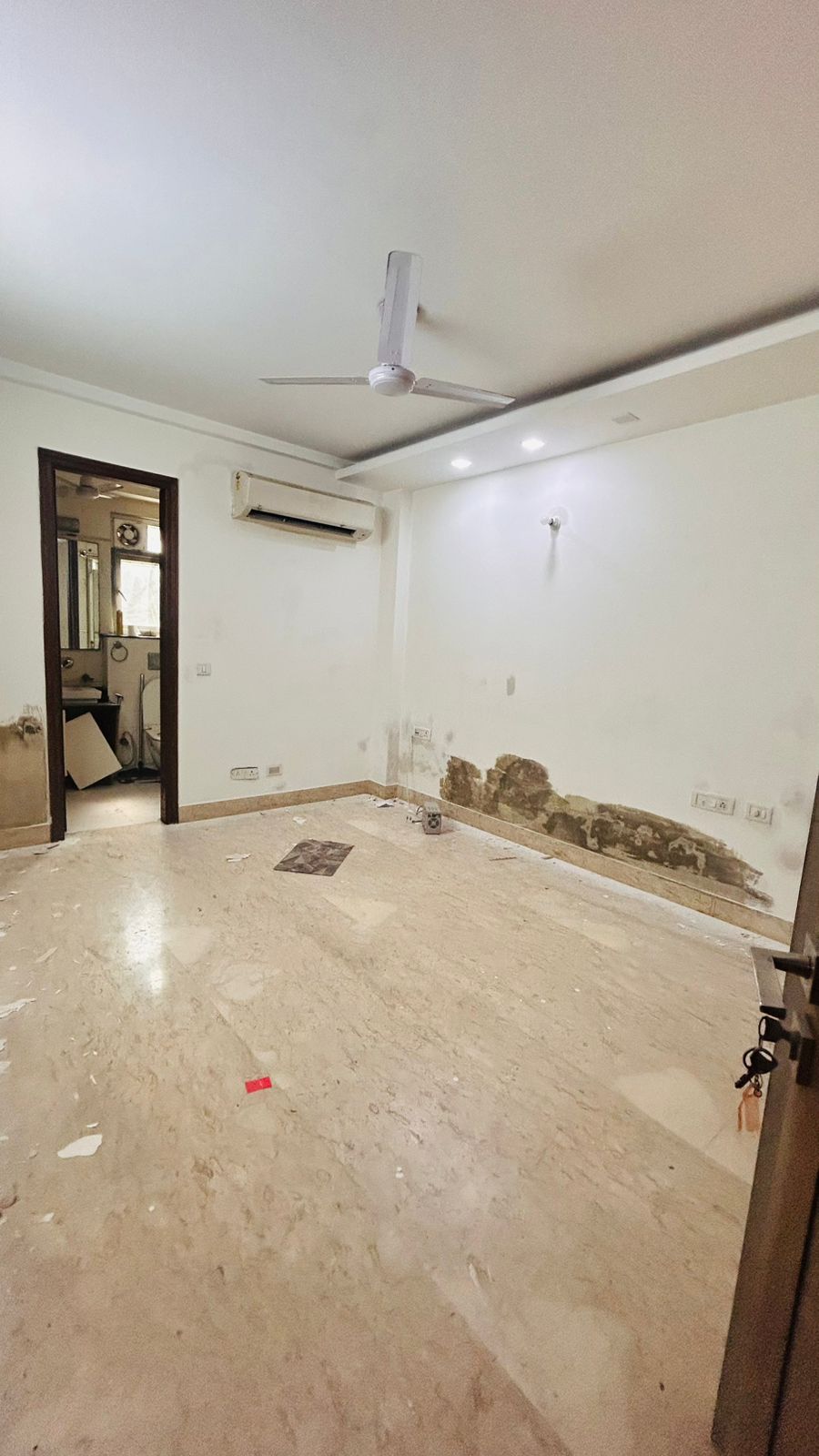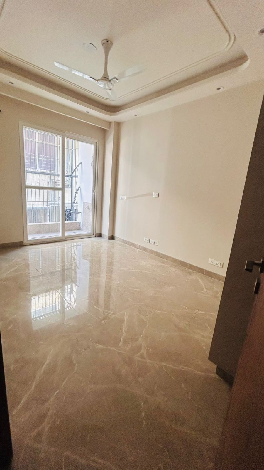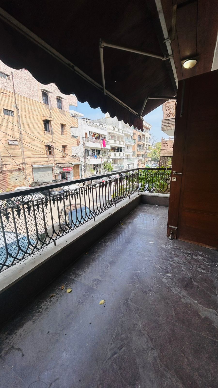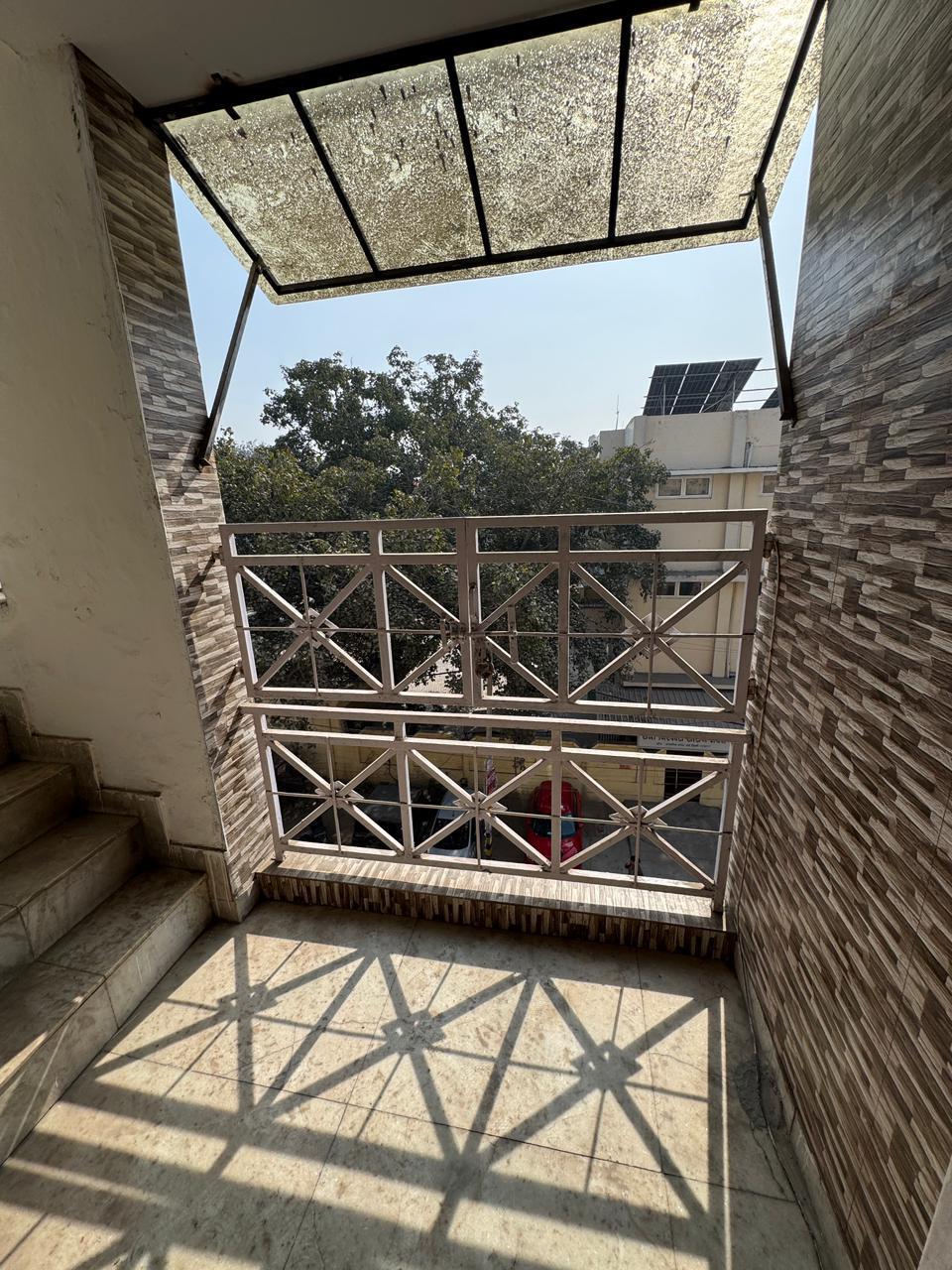 This newly built builder floor in Malviya Nagar, Delhi, offers an attractive living experience with its prime location and road view.