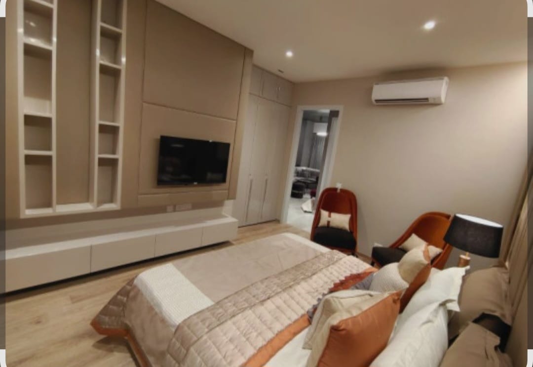 • This semi-furnished 3-bedroom, 3-bathroom unit is located on the first floor and overlooks a serene garden, complemented by one dedicated