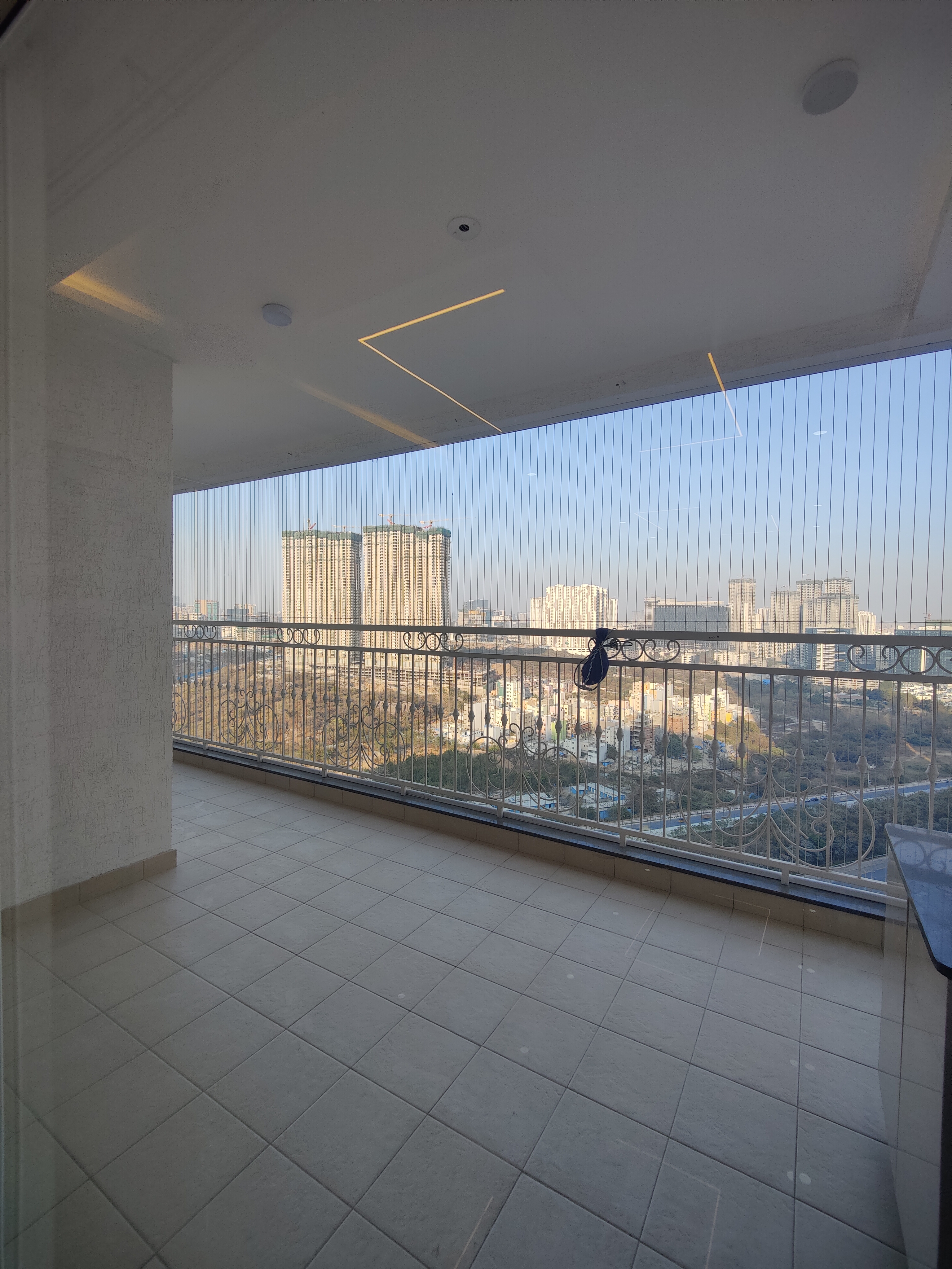 A furnished 4-bedroom, 4-bathroom Flats is available for rent in the Gachibowli area of Hyderabad, located on the 13th floor of the My Home Vihanga project.