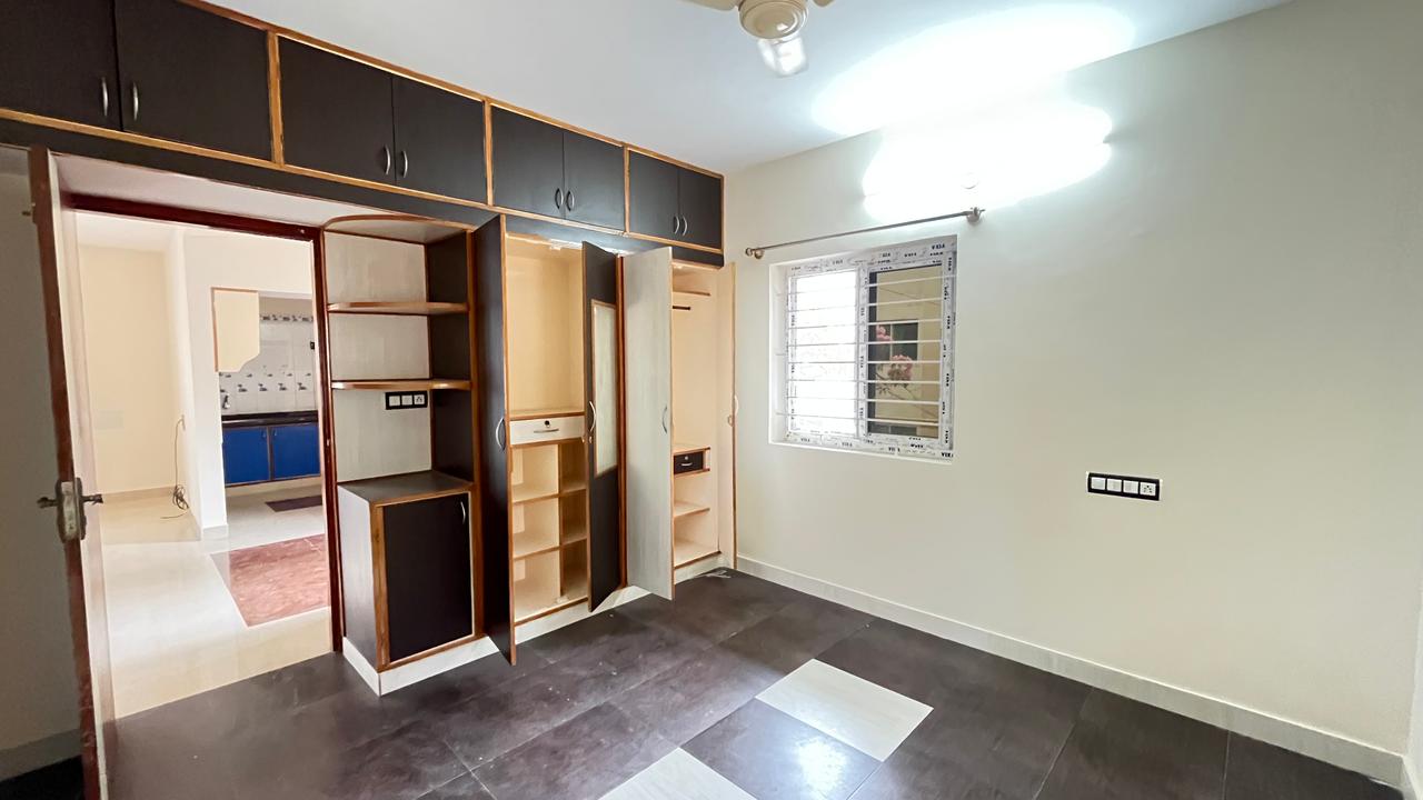 This semi-furnished 2-bedroom, 2-bathroom builder floor in HSR Layout, Bangalore, offers a practical living solution for families and bachelors alike.