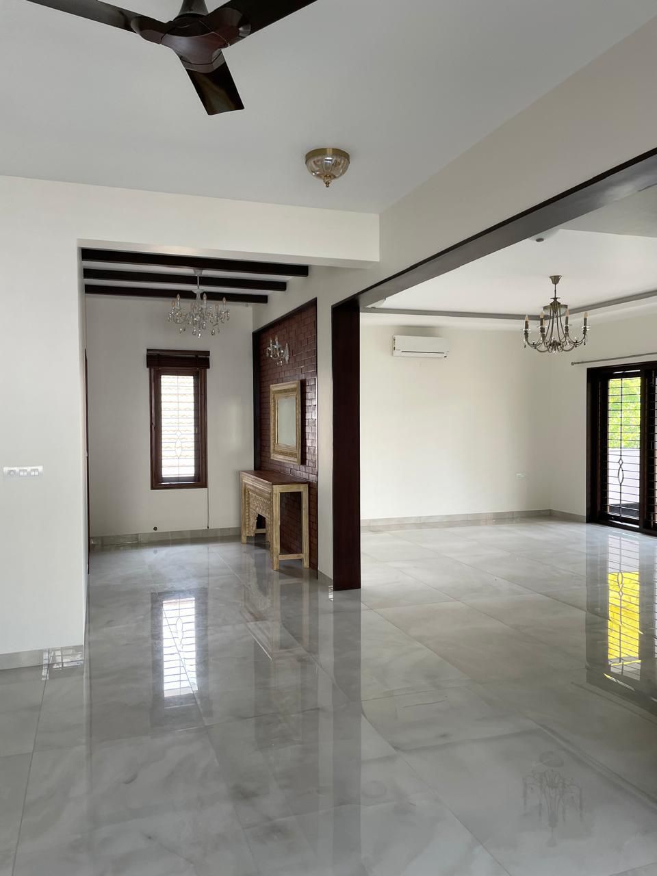 This semi-furnished 4-bedroom, 4-bathroom Flats in Adarsh Lakefront Phase 2, Marathahalli ORR, Bangalore, is available for rent at 1.6 Lac and offers a spacious living experience with 2850 square feet of area.
